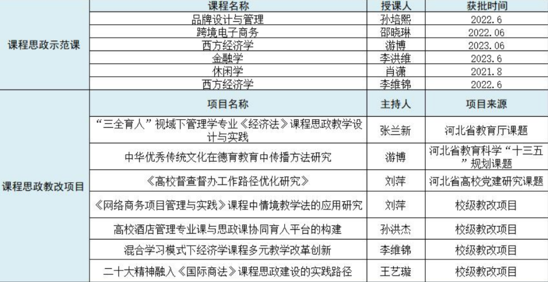 商学院教师以以德施教的教育理念,以中国传统文化融入和遵纪守法观念融入为两条主线,落实立德树人根本任务,推进课程思政建设,深化教学改革,育人成效显著。