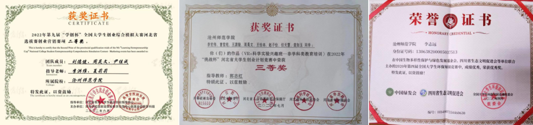 学院特色文化的滋养下,育人成效突显。学生创新创业的实践能力明显提升,G 调拾物、清依茶社、诚信小站等学生创新创业项目孵化,并产生专业品牌效应。其中,G调拾物为大凉山的捐赠,帮助了很多有需要的孩子;诚信小站项目多次被沧州晚报报道,其创造收益资助贫困学生,受到贫困家庭、学校以及社会的赞扬。这类创新创业项目的成功,激发更多学生的创新热情,创新创业项目比赛的参与度和参与效果明显提升,在各类比赛中,商学院学生成绩优异。