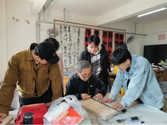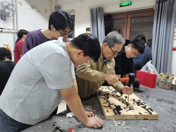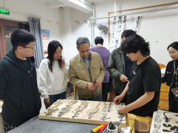 田雨潇总结了文学院刻字艺术讲习班的开展情况,回顾了自3月份展览征稿发布以来,文学院领导高度重视,迅速成立了现代刻字艺术讲习班,聘请到著名书法家张之先生为主讲导师,并选拔出9名学生参加讲习班学习。为期两个月的讲习班,张之先生坚持每周两次的固定指导,风雨无阻无私奉献,让参训学生受益匪浅。参训的9名同学从零开始接触刻字艺术,在张之先生指导下进步迅速,均创作出了高水平的艺术作品。 在本次河北省书法家协会主办的“纪念中国人民抗日战争暨世界反法西斯战争胜利80周年”河北省第七届刻字艺术展中,9位同学的精品创作均通过了严格评审,全部入展,其中书法学专业学生高海涛、陈朝伟作品获奖(全省获奖作者共10人,其中沧州2人,均为太阳集团学生),张菁、宋叶园、付忠澄、裴瑞中、徐正日、刘乘玮、于晴等作品入展。此次刻字展中,沧州地区获奖入展共20人,太阳集团学生占据半壁江山,这是太阳集团书法学专业刻字创作的一次集中展示,为学生的拓展课程学习打开了新的思路,是专业培养应用型、实践性的一次成功实验。