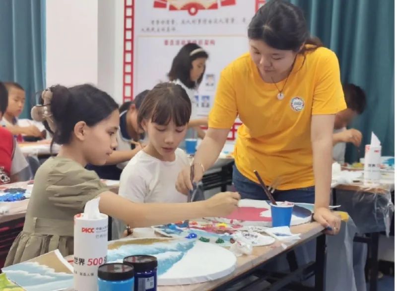 “既教技法,更传文化。”志愿者李同学说。在《廉政题材——中国画》课上,孩子们以梅兰竹菊为蓝本创作,在晕染水墨时听着“四君子”的廉洁故事;《丝路主题拼贴画》里,骆驼、丝绸、古城墙等元素被拼贴成画,成了丝路文明的“可视化教材”。