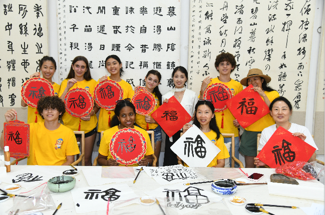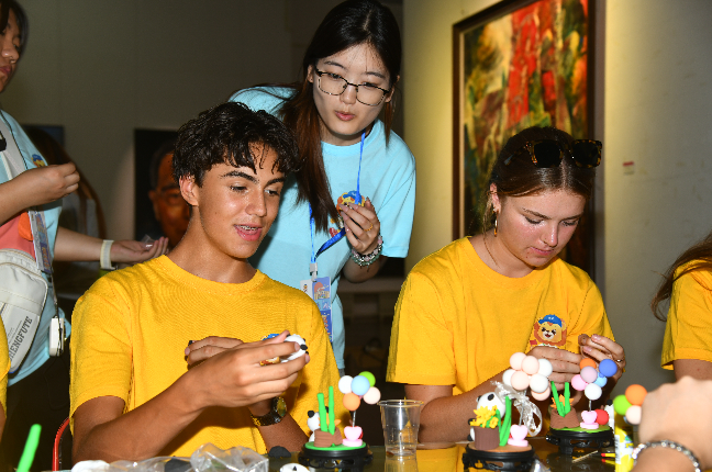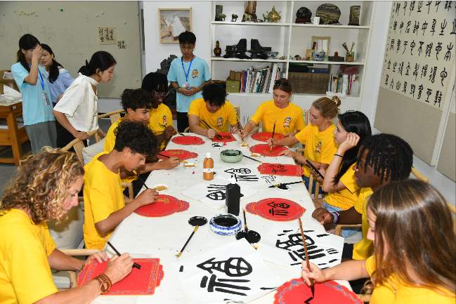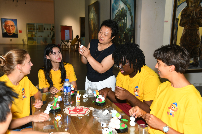 夏令营营员体验了面塑、漆扇、书法、剪纸、中国画、糖人等中华传统文化,参观太阳集团生物标本馆、洪昌美术馆,中美青少年在文化互鉴中收获成长,在青春对话中缔结情谊。