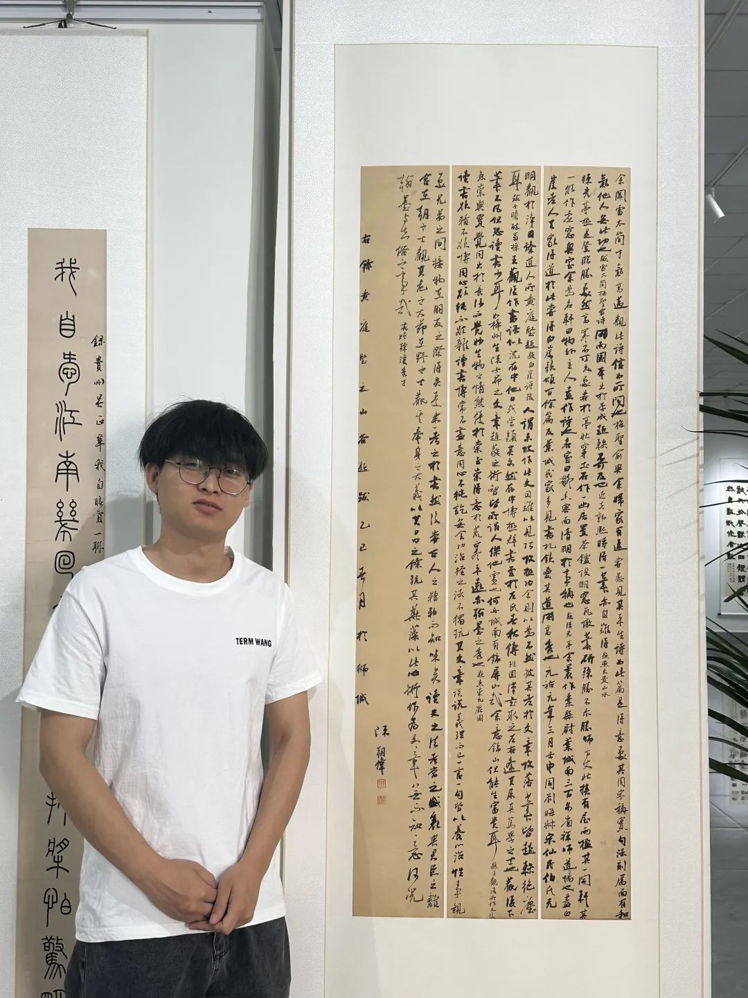 专业成绩突出的背后,是一等奖学金证书与“三好学生”荣誉称号无法完全承载的付出。当宿舍楼道响起游戏声时,他在书法教室临摹碑帖的起笔收锋;当周末社团活动热闹开场时,他正对着省级展览的征稿启事调整章法布局。毕业季的省级“优秀毕业生”称号,于他更像一段旅程的小结。这种静水流深的努力,各种展览的获奖、入展通知便成了最自然的回馈。