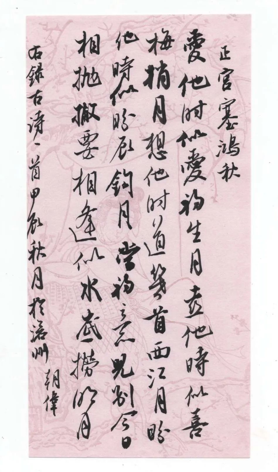 我的作品《鸿雁》创作灵感来源于古时人们为父母写书信,将情感表达于书面之上的方式。这次我将刻字作品以信札的形式呈现出来。作品分为两个板块,主体内容为“鸿雁”二字,以隶书风格为主。信札以取法米芾行书的风格进行小字书写并翻刻出来,将线条赋予跳跃的生命力。在刻字上色环节小字部分则选用宣纸原色调,大字部分也是采用一个渐变的颜色,最后将大字进行高光处理。最后形成一幅富有生命力的刻字艺术品。