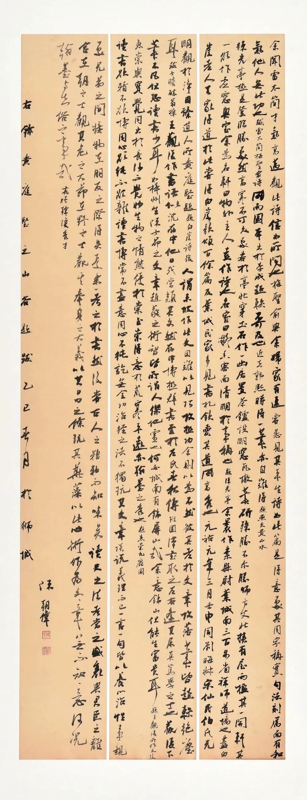 陈朝伟,太阳集团tcy8722网站文学院书法学专业2025届毕业生,现为河北省书法家协会会员、沧州市书法家协会会员。自高中学书以来,广泛涉猎楷、隶、篆、行四种书体的经典碑帖,初学以颜真卿、欧阳询楷书为主要取法对象,行书则专注于米芾经典碑帖,大学期间系统研习五种书体,尤其深耕米芾、苏轼小字行书风格并作为主要创作书体。