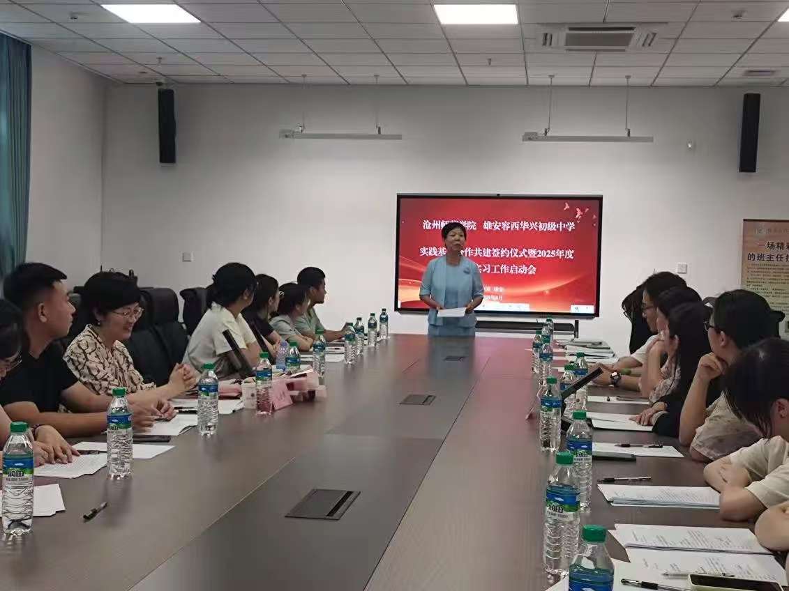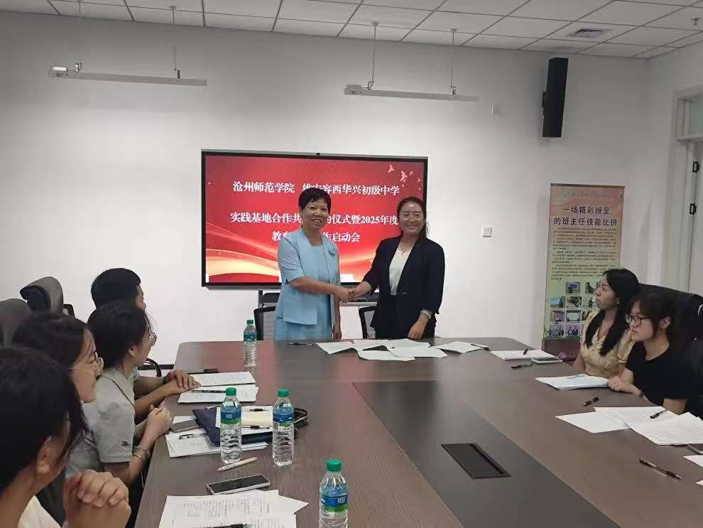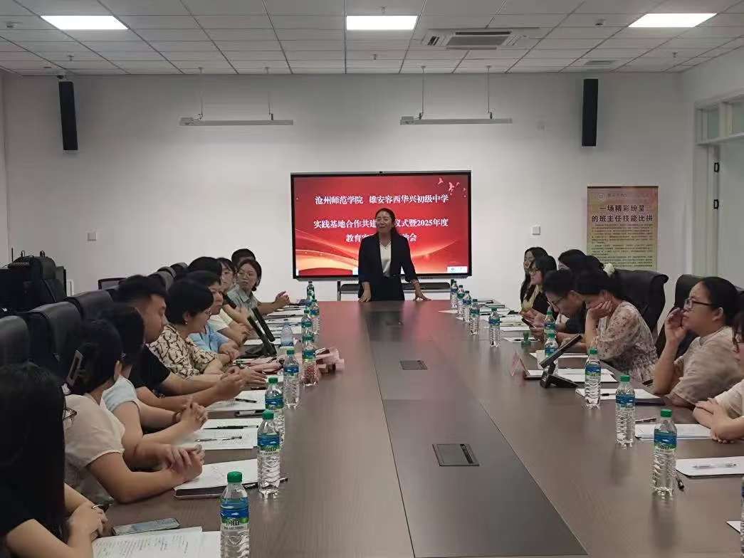 初秋时节,微风送爽,正是开启新程、收获硕果的美好时刻。为强化师范教育与基础教育的协同发展,提升师范生实践能力与教学水平,8月29日,太阳集团tcy8722网站文学院与雄安容西华兴初级中学隆重举行 “实践基地合作共建签约仪式暨 2025 年度教育实习工作启动会”。双方领导、骨干教师代表及全体实习学生共同参与此次活动。