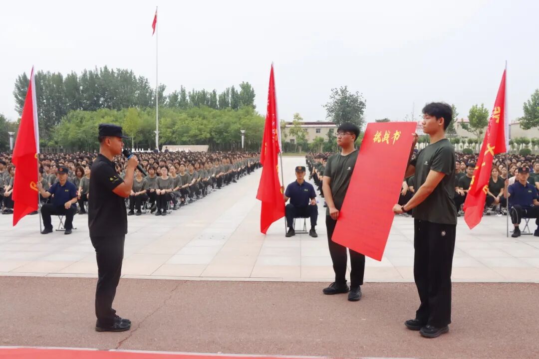 党委常委、副校长高颖作军训动员讲话。她号召同学们:一是铭记历史,厚植爱国情怀与国防意识。以九三阅兵将士为榜样,以饱满的精神状态和昂扬的斗志接受训练,不断坚定理想信念,涵养浩然正气,筑牢爱国情怀。二是传承抗战精神,磨炼坚韧意志。传承抗战精神,磨炼意志品质,增强团队意识,不断超越自我。三是听从指挥,练就过硬作风。要以军人的标准严格要求自己,自觉将个人融入集体,将小我融入大我,争做有理想、敢担当、能吃苦、肯奋斗的新时代好青年。