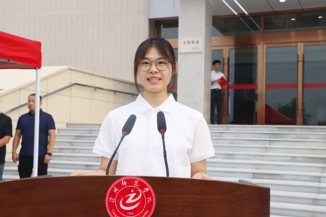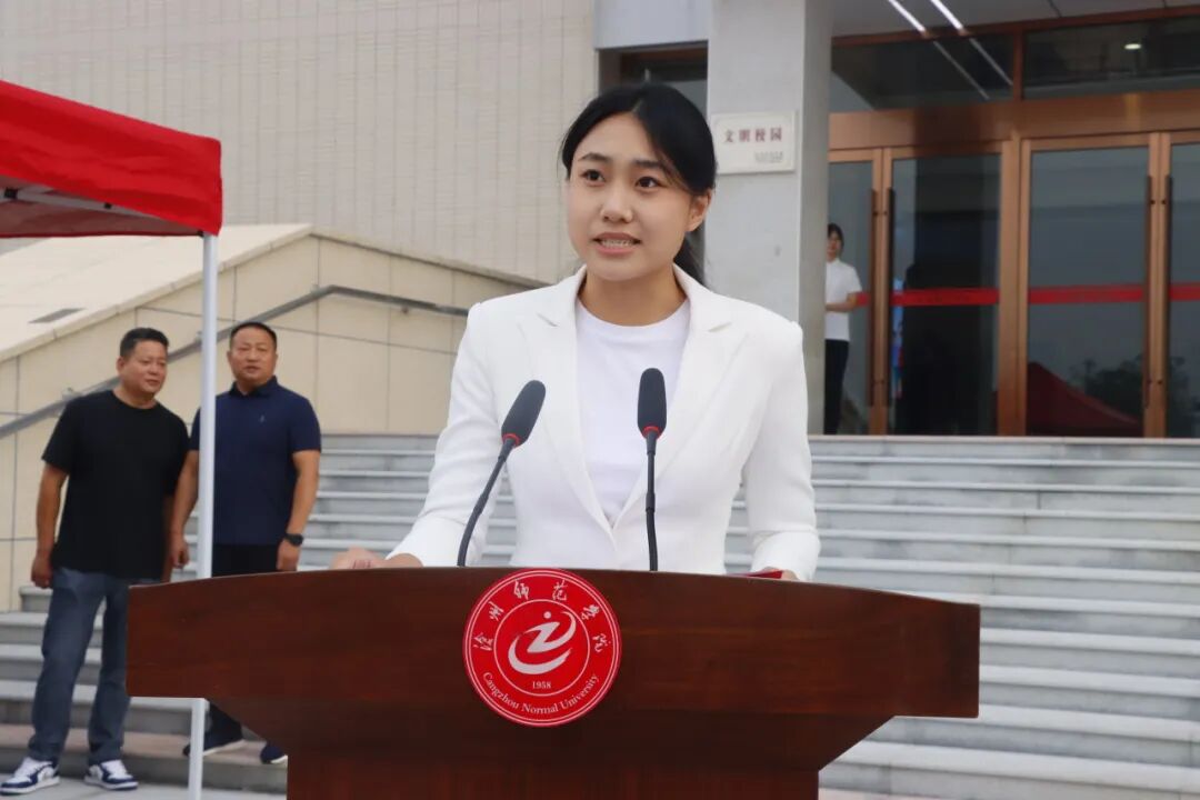 美术学院教师李岩、齐越传媒学院2024级播音与主持艺术专业李佳桐、化学与化工学院2025级化学专业王新冉,分别代表全校教师、在校生与新生发言。他们在发言中鼓励同学们为热爱奔赴、为理想付出,都表达了让青春在实现中华民族伟大复兴的壮阔征程中绽放光彩的决心与信心。