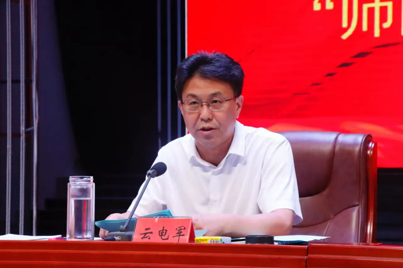 为引导广大教师积极投身教育强国建设实践,立“大先生”志,做奋斗者,育时代新人,云电军提出三点要求: 一是“三尺讲台系国运,一生秉烛铸民魂”,做胸怀“国之大者”的典范。在实践中引导学生体察国情,让知识传授始终与国家发展同频共振,通过讲好中国故事、解析中国道路,培养学生对国家的认同感、归属感与责任感,让学生明白个人的理想追求唯有融入民族复兴的伟大事业,才能绽放最耀眼的光芒,真正成长为能够承担历史责任和国家责任的时代新人。二是“令公桃李满天下,何用堂前更种花”,做“修德立身”的示范。既要有热爱教育的定力,更要在日常点滴中践行“以德立身、以德立学、以德施教”,在是非面前旗帜鲜明,向学生传递正确的价值判断;在曲直之间坚守原则,让学生看见正直的力量;在善恶之际明辨取舍,教会学生守住做人的底线;在义利面前懂得权衡,引导学生树立正确的得失观。三是“自闭桃园称太古,欲栽大木柱长天”,做“教书育人”的模范。要牢记“为党育人、为国育才”的初心使命,既要善用AI这个“新帮手”,将技术优势转化为教育提质的动能;更要守住育人的“老本分”,课堂上以生动讲解让理论扎根现实土壤,以巧妙提问点燃学生的探究热情;课下用一句鼓励化解学生的迷茫困惑,用一次深谈帮助他们校准人生航向。