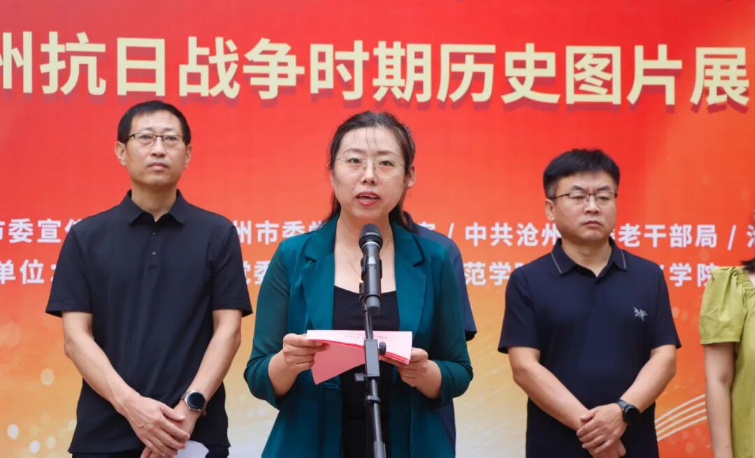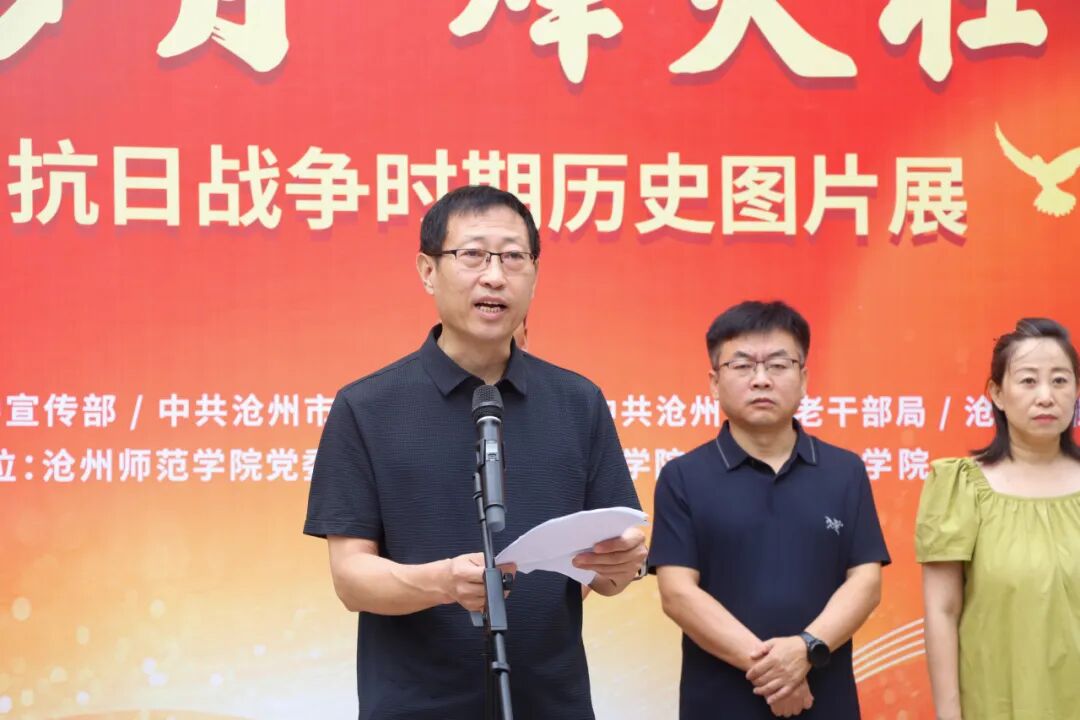 何智强表示,展出的百余幅历史图片,凝聚着沧州人民“宁为玉碎,不为瓦全”的民族气节,是开展党史学习教育、传承红色基因的生动教材。希望广大师生铭记历史,筑牢理想信念之基、补足精神之钙、把稳思想之舵;缅怀英烈,弘扬爱国主义精神,传承红色基因,厚植家国情怀。希望以本次展览为契机,进一步推动党史资源与高校思政教育深度融合,将地方红色历史转化为立德树人的优质资源,教育引导学生树立正确的思想价值观念。