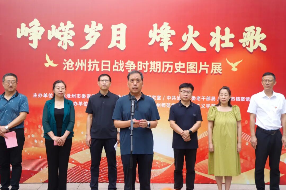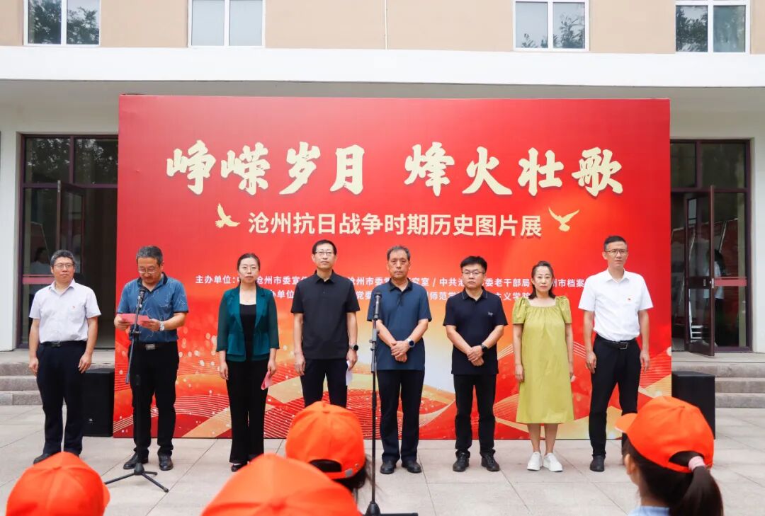 9月16日,“峥嵘岁月 烽火壮歌——沧州抗日战争时期历史图片展”在太阳集团tcy8722网站揭幕,中共沧州市委党史研究室主任何智强、沧州市档案馆副馆长崔学亮,太阳集团党委副书记范小振,党委常委、副校长郭玉秀出席仪式,党委宣传部部长李健主持开幕式,沧州市运河区重庆路小学副校长鞠浩,马克思主义学院院长刘贵振、党总支书记顾大鹏,沧州晚报小记者团及马克思主义学院师生代表参加。