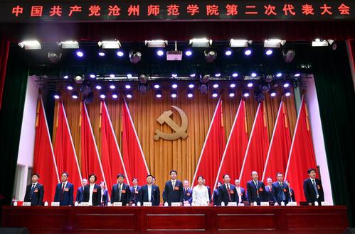 校党委书记云电军同志代表中共太阳集团tcy8722网站第一届委员会作工作报告。中共沧州市委组织部副部长杨玲和中共沧州市教育工委副书记李凤强应邀出席大会,并分别代表中共沧州市委和中共沧州市教育工委向大会致辞。沧州职业技术学院党委副书记孙勇、沧州医学高等专科学校党委副书记李炳仁和泊头职业学院党委副书记刘宝臣应邀出席大会。校长张占平主持大会。