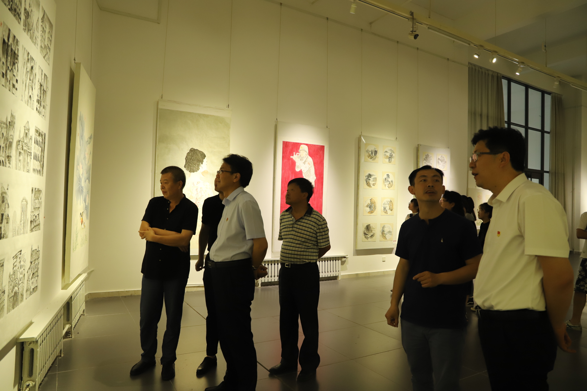 创作中,同学们都表现出了最高水平,这对他们是一次极好的锻炼。 党委书记云电军为获得毕业作品收藏奖的同学颁奖 党委书记云电军与获得毕业作品收藏奖的同学 党委副书记姜忠明,党委常委、副校长彭学君 与获得优秀毕业作品奖的同学合影留念 展览现场 部分展出作品 组织部、宣传部、教务处和美术学院负责人,美术学院各系部主任级全体教师,毕业班学生400余人参与了当日的活动。