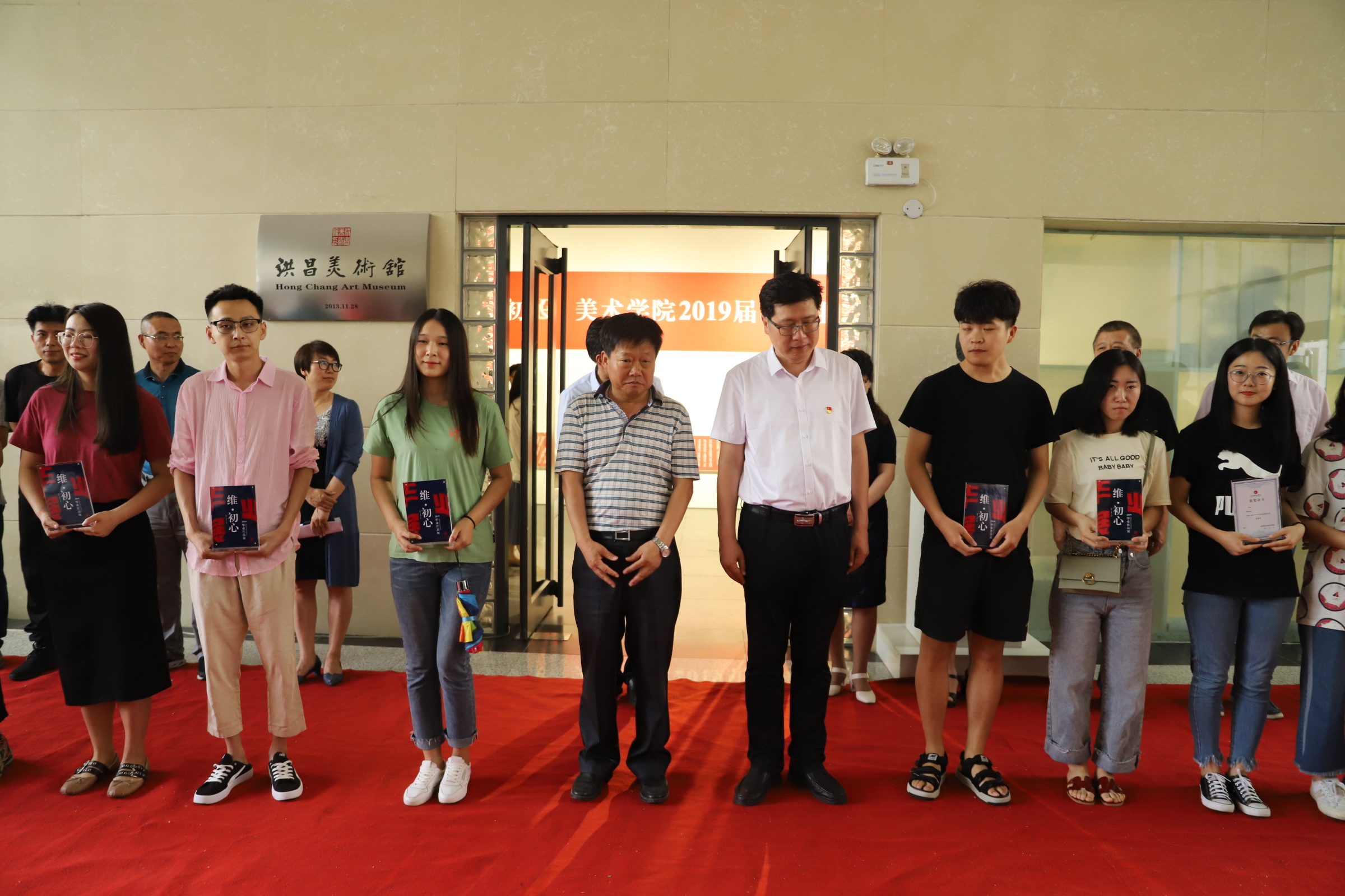 6月5日,美术学院《维·初心—2019届本科毕业创作作品展》在洪昌美术馆正式开幕。党委书记云电军为获得毕业作品收藏奖的同学颁奖。党委副书记姜忠明,党委常委、副校长彭学君为获得优秀毕业作品奖的同学颁奖。