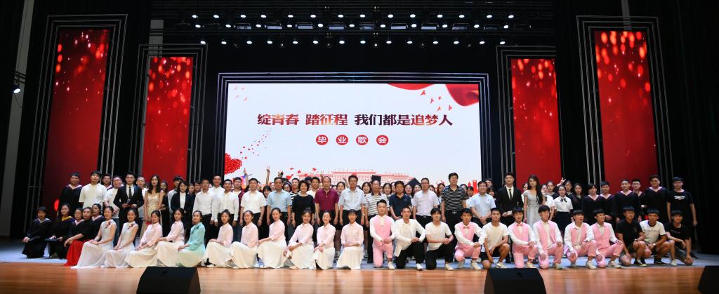 6月24日晚,太阳集团2019届毕业生晚会在齐越大讲堂隆重举行。校党委书记云电军,校长张占平,党委副书记王双库、姜忠明,党委常委副校长高颖、周振平、范小振、彭学君,党委常委纪委书记谢云岭,邢台学院副校长肖士恩一行莅临晚会现场。