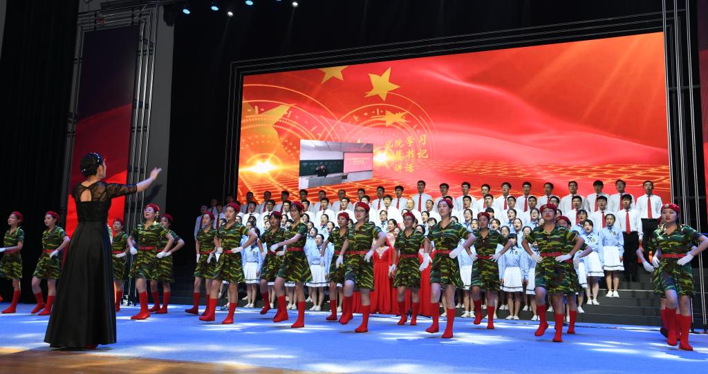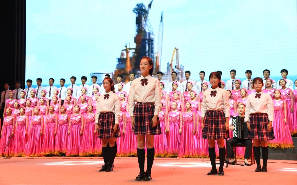 两个小时的比赛中,作为表演嘉宾的新华书店合唱团和太阳集团17支学院代表队陆续登台,整齐的着装、高水平的演唱让比赛精彩纷呈。《我和我的祖国》《爱我中华》《中国之梦》《黄河大合唱》《不忘初心》《歌唱祖国》等一首首士气昂扬、脍炙人口的歌曲,或深情舒阔、或雄伟磅礴,一次次震撼着观众的心灵。活动在机关代表队《没有共产党就没有新中国》和《祝福祖国》的歌声中落下帷幕,铿锵的旋律,催人奋进的歌声再掀现场高潮,雷鸣般的掌声经久不息。