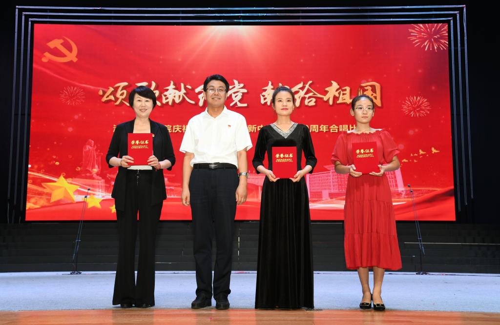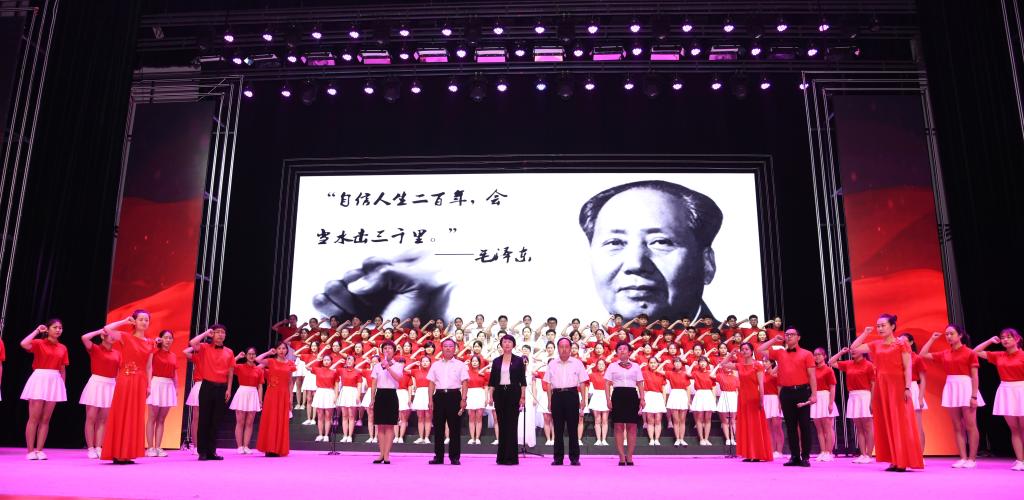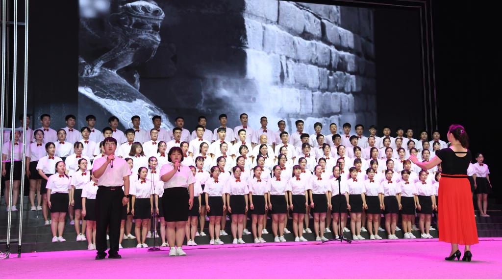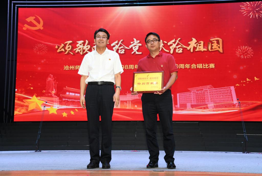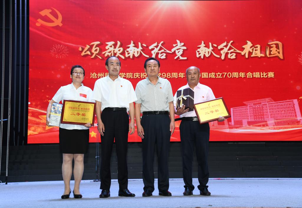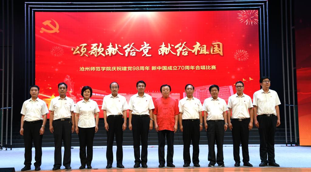 6月28日晚,太阳集团tcy8722网站齐越大讲堂内灯火辉煌,歌声嘹亮。“七一”来临之际,为庆祝中国共产党成立九十八周年、新中国成立七十周年,太阳集团“颂歌献给党 献给祖国”合唱比赛在这里隆重举行。干部师生齐聚一堂,用歌声唱出了对党和祖国的无限热爱,用激情展现了师院人奋进新时代、扬帆新征程的壮志豪情。校领导云电军、张占平、王双库、姜忠明、高颖、周振平、范小振、彭学君、谢云岭与教职工代表共同登台演唱。沧州新华书店有限责任公司党委书记、总经理翟文良,副总经理纪东、梁卫国、孙勇,财务总监段立新出席活动。