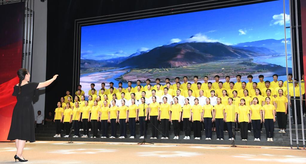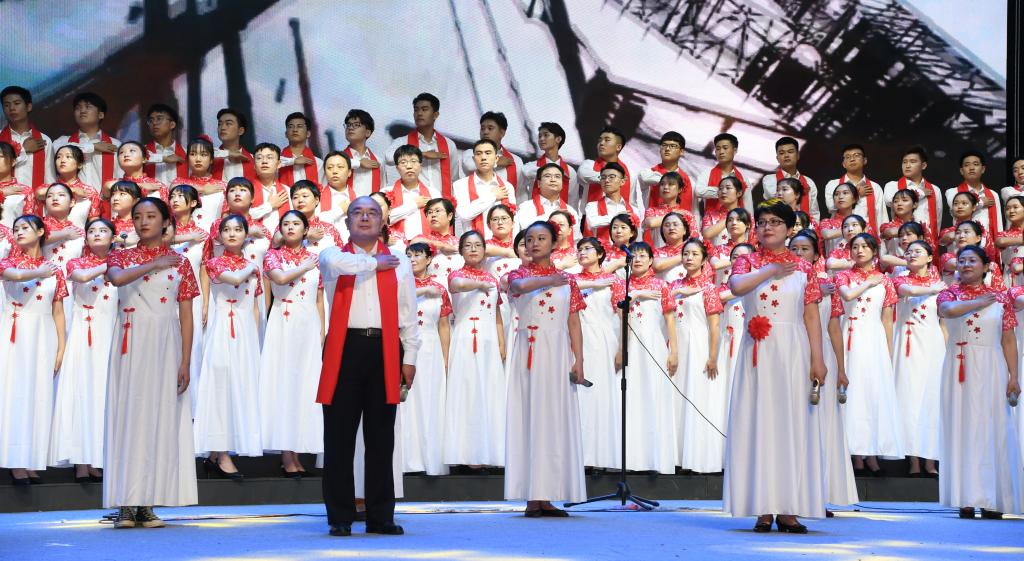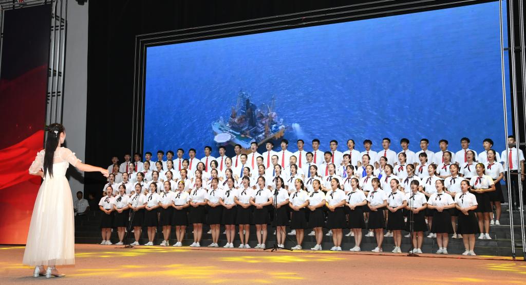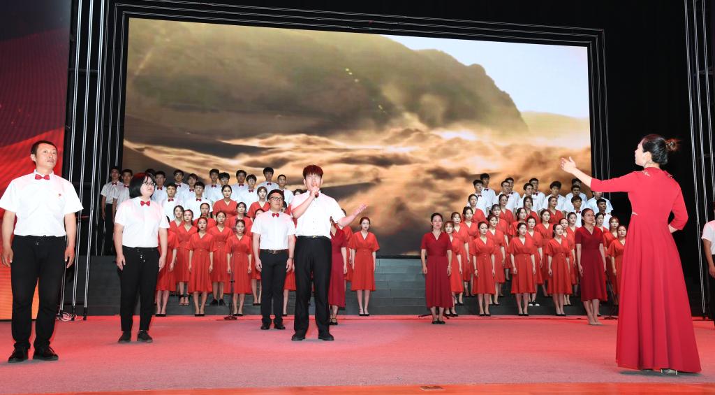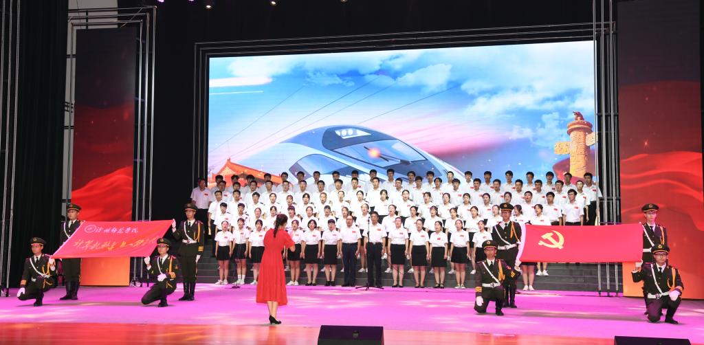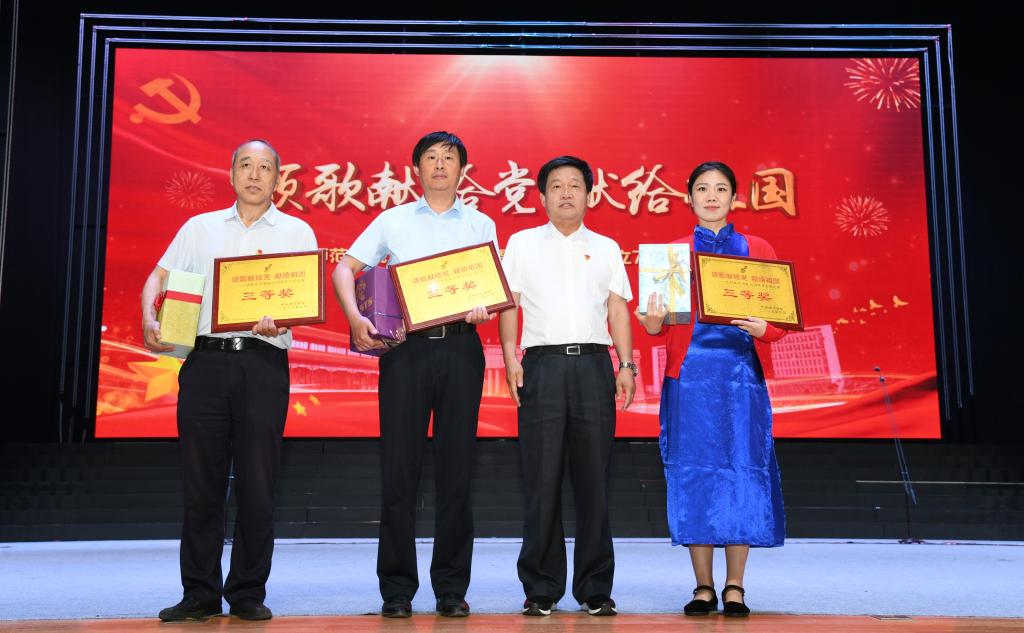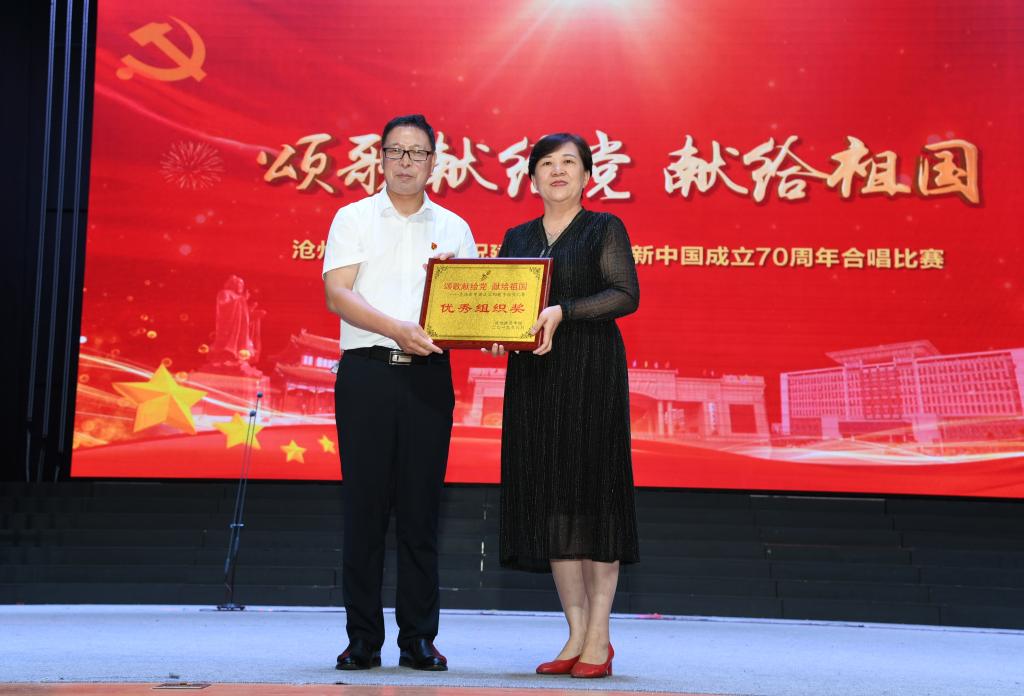 6月28日晚,太阳集团tcy8722网站齐越大讲堂内灯火辉煌,歌声嘹亮。“七一”来临之际,为庆祝中国共产党成立九十八周年、新中国成立七十周年,太阳集团“颂歌献给党 献给祖国”合唱比赛在这里隆重举行。干部师生齐聚一堂,用歌声唱出了对党和祖国的无限热爱,用激情展现了师院人奋进新时代、扬帆新征程的壮志豪情。校领导云电军、张占平、王双库、姜忠明、高颖、周振平、范小振、彭学君、谢云岭与教职工代表共同登台演唱。沧州新华书店有限责任公司党委书记、总经理翟文良,副总经理纪东、梁卫国、孙勇,财务总监段立新出席活动。