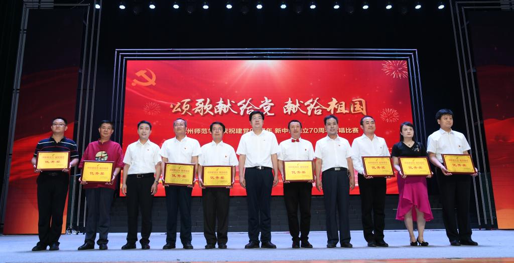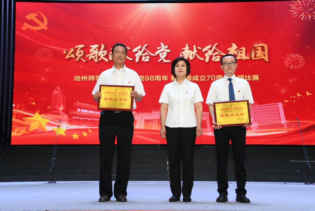 经评比,外国语学院荣获一等奖;计算机科学与工程学院、文学院荣获二等奖;化学与化工学院、历史学院、美术学院荣获三等奖;教育学院、法政学院荣获最佳风采奖;商学院、经济管理学院、数学与统计学院、机械与电气工程学院、体育学院、生命科学学院、物理与信息工程学院、齐越传媒学院荣获优秀奖。作为嘉宾参与表演的音乐学院获优秀组织奖;新华书店获特别贡献奖。外国语学院院长赵林静,教育学院教师倪美英,计算机学院学生王晴获“优秀指挥”荣誉称号。“师院这次合唱比赛有水平,充满爱党爱国的正能量。19支队伍2000多人都下足了工夫,舞台表现可圈可点,难分高下。”评委张占军说。