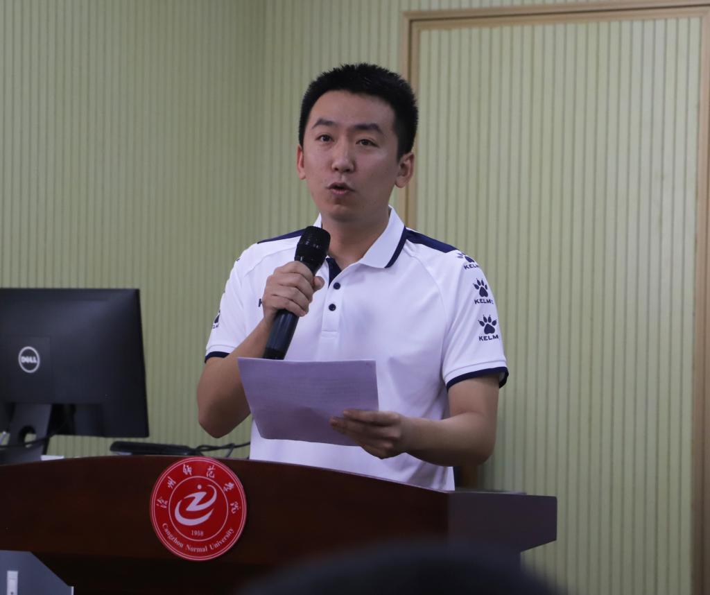 体育学院青年教师郝宗帅和学生刘力丹分别代表教练员和运动员发言,他们都在发言中对校、院领导的支持表示了感谢,并承诺将充分发扬“孜孜以求、团结奉献、精益求精、敢于胜利”的师院精神,圆满完成教练和比赛任务。