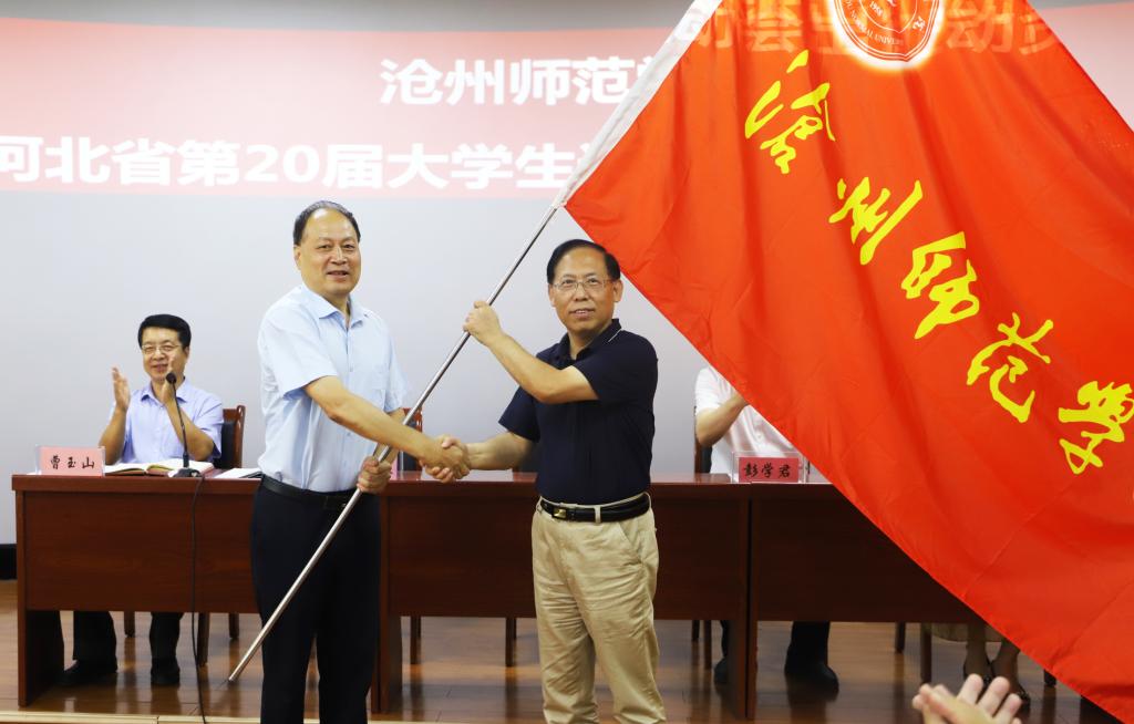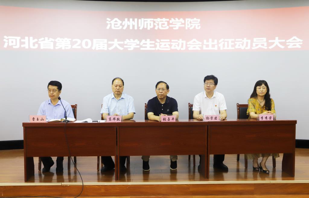河北省第二十届大学生运动会将于2019年7月11日在河北机电职业技术学院举办。7月9日,太阳集团在文科楼七阶举行了出征动员大会。党委副书记、校长张占平为代表团授旗。党委常委、副校长彭学君发表讲话。