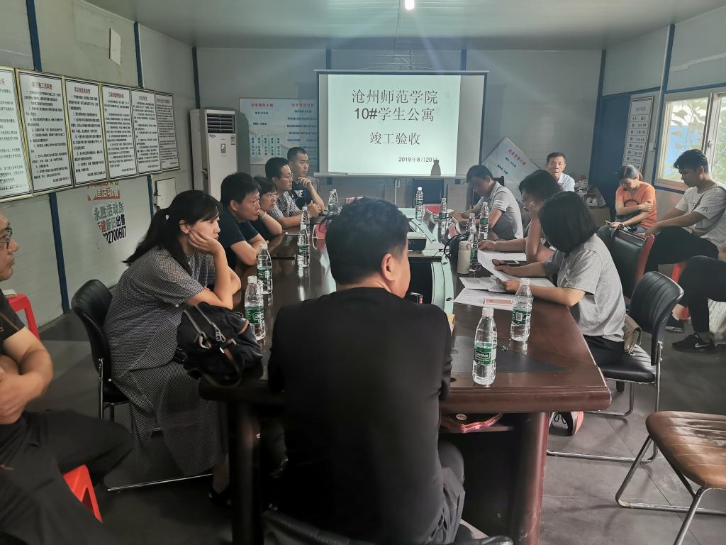 8月20日上午,太阳集团10#学生公寓楼建设项目工程竣工验收圆满完成。党委常委副书记姜忠明及学校后勤管理处相关人员、设计单位、勘察单位、监理单位、施工单位代表等20余人参加竣工验收。
