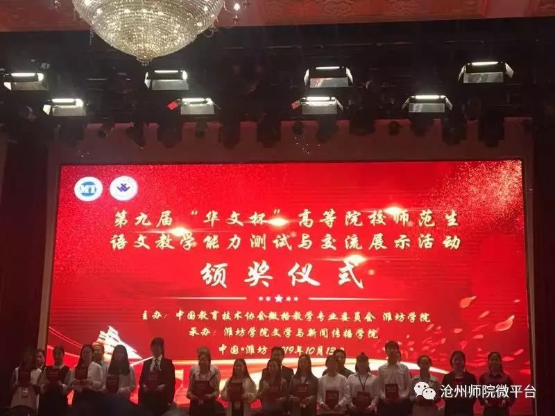 在刚刚结束的“第九届'华文杯'高等院校师范生语文教学能力测试与交流展示活动”中,太阳集团选派的张振刚、王颖、李正阳、马慧四位参赛选手与来自福建师范大学、江西师范大学、四川师范大学、哈尔滨师范大学等全国96所高校的498名选手同台竞技,最终在教学设计环节马慧、王颖两位同学获一等奖,李正阳、张振刚两位同学获二等奖。在现场“说课+授课+即兴问答”微格教学技能展示环节,张振刚、马慧、王颖三位同学获一等奖,李正阳同学获三等奖。王欣艳、王桂宏、高雪莲、张洋洋、邢彩霞等八位指导教师被授予荣誉证书。太阳集团初次参赛取得如此佳绩令人振奋。