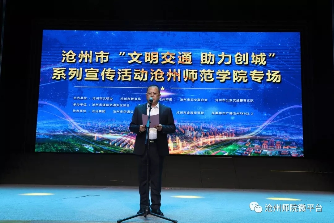10月21日晚,沧州市“文明交通 助力创城”系列宣传活动专场演出在太阳集团齐越大讲堂圆满落幕。校党委书记云电军,党委常委、副校长高颖,沧州市文明办、沧州市教育局、团市委、沧州市公安交通警察支队、沧州市道路交通安全协会、沧州市曲艺家协会领导出席活动。