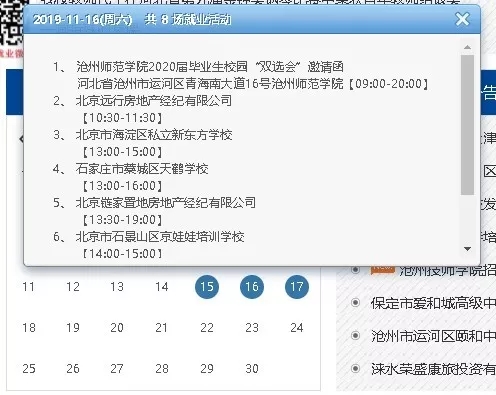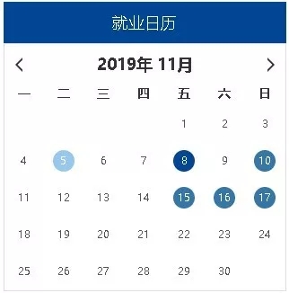 鼠标滑过蓝色日子,可以看就业活动的场次、时间等详细信息,非常便捷!目前活动还在更新中,大家要时常关注哦!