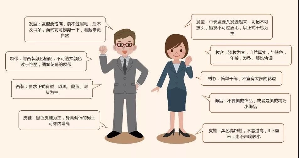 参加双选会,服装要大方得体,保持干净整洁,注重稳重、职业的风格,不必一定针对某类行业专门备装。裁剪精良,线条简洁,从每一片裁剪中,可以体现你的品位所在,增加别人对你的信任度。