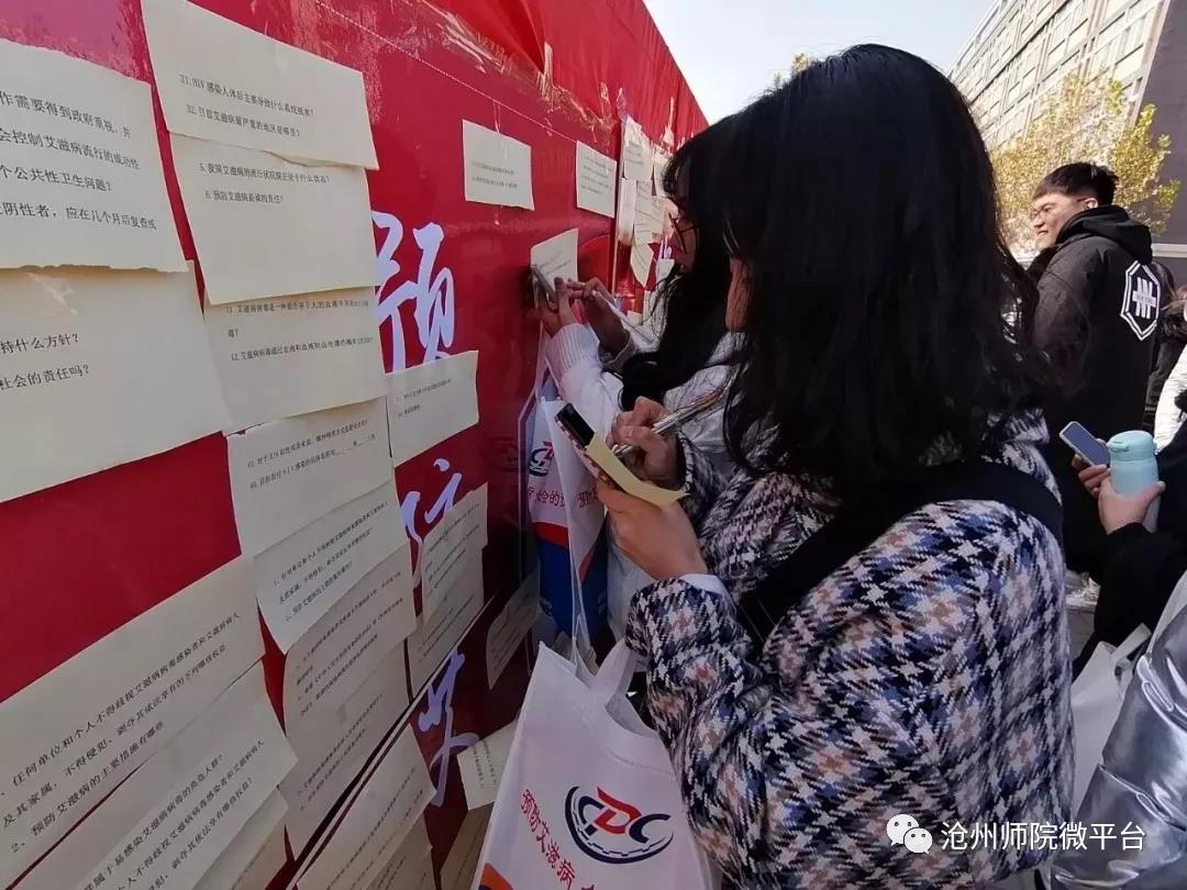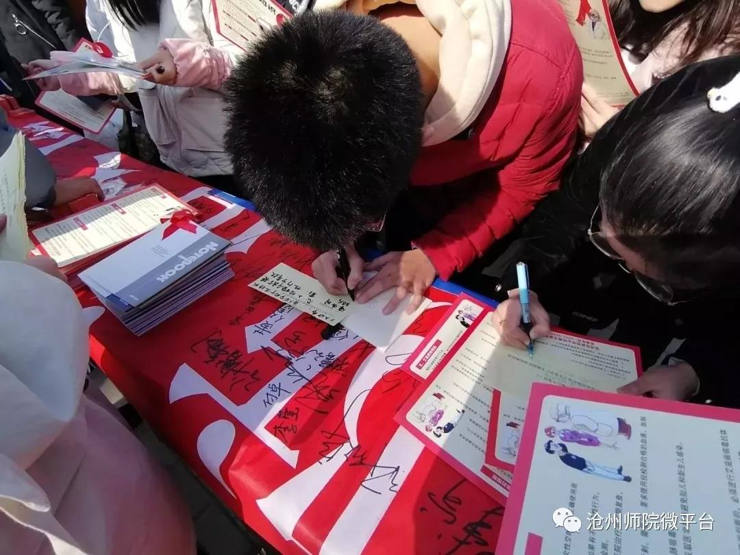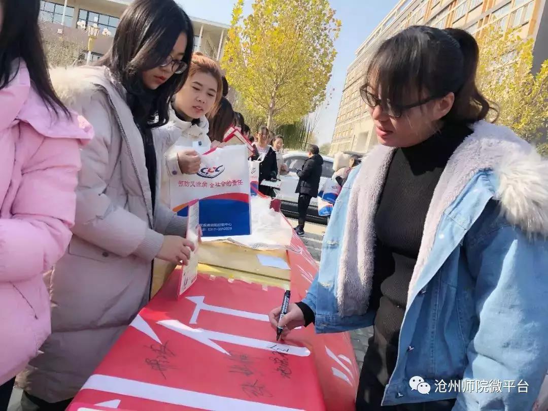 第32个艾滋病宣传日来临之际,太阳集团教育学院团总支学生会、青年志愿者协会、风行辩论社联合沧州市疾病预防控制中心在文科楼前小广场共同举行了“防治艾滋,你我同行”防艾宣传活动。