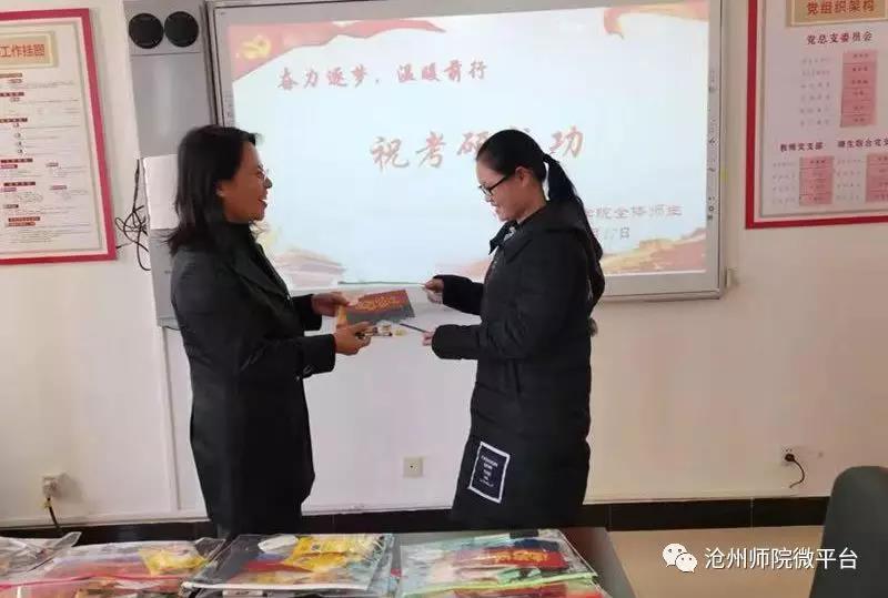 感谢云书记、张校长对于我们考研同学的关爱。校领导的祝福语正如冬日的暖阳温暖我们心扉。同时也感恩文学院老师们对我们的细心呵护,这一切让我们深切感受到了师院的大爱。考研是一条艰苦之路,这一路上充满着艰辛和苦楚,学院里为我们提供了专用的复习教室,领导和老师都给予了我们莫大的帮助!今天学院里又为我们准备了考研大礼包,在孔书记的手里接过礼品时,我内心真的十分激动!我一定会以十分的努力来回报领导和老师。