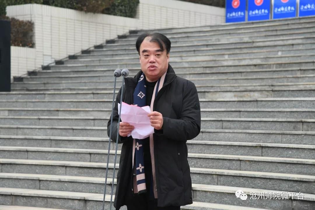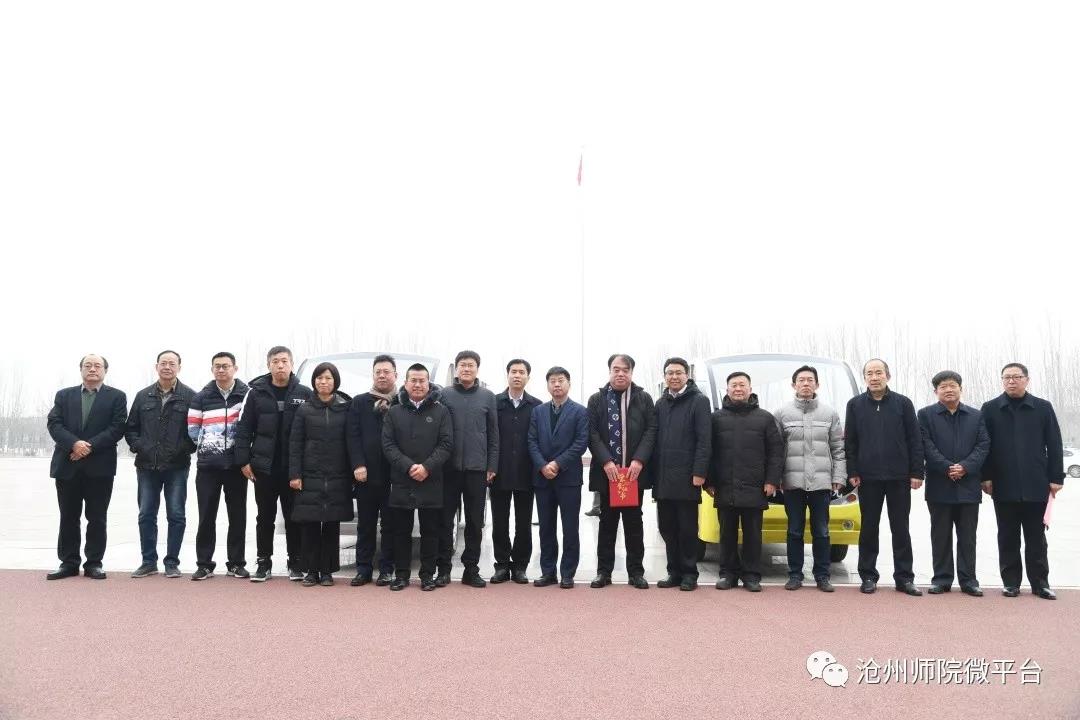 王双库致辞。他指出,高总带着对教育事业的满腔热忱,向太阳集团捐赠了两辆新能源校园观光车。这一善举,彰显了一名杰出企业家的教育情怀和社会责任感,响应了国家对节能减排、绿色发展的倡导,为师院展示七色文化,打造人文校园提供了绿色动能。爱心企业家的善举,不仅停留在物质层面的援助,更体现了中华民族尊师重教的高尚情操,饱含着他们对教育事业发展的热切期盼。师院人一定会铭记爱心企业和社会各界人士的厚爱,不忘办学初心,牢记育人使命,砥砺前行,追求卓越,为沧州地区经济社会发展作出新的更大贡献。同时,也希望社会各界人士一如既往地关心支持太阳集团工作,继续为太阳集团建设地方高水平师范类应用型大学出谋献策。