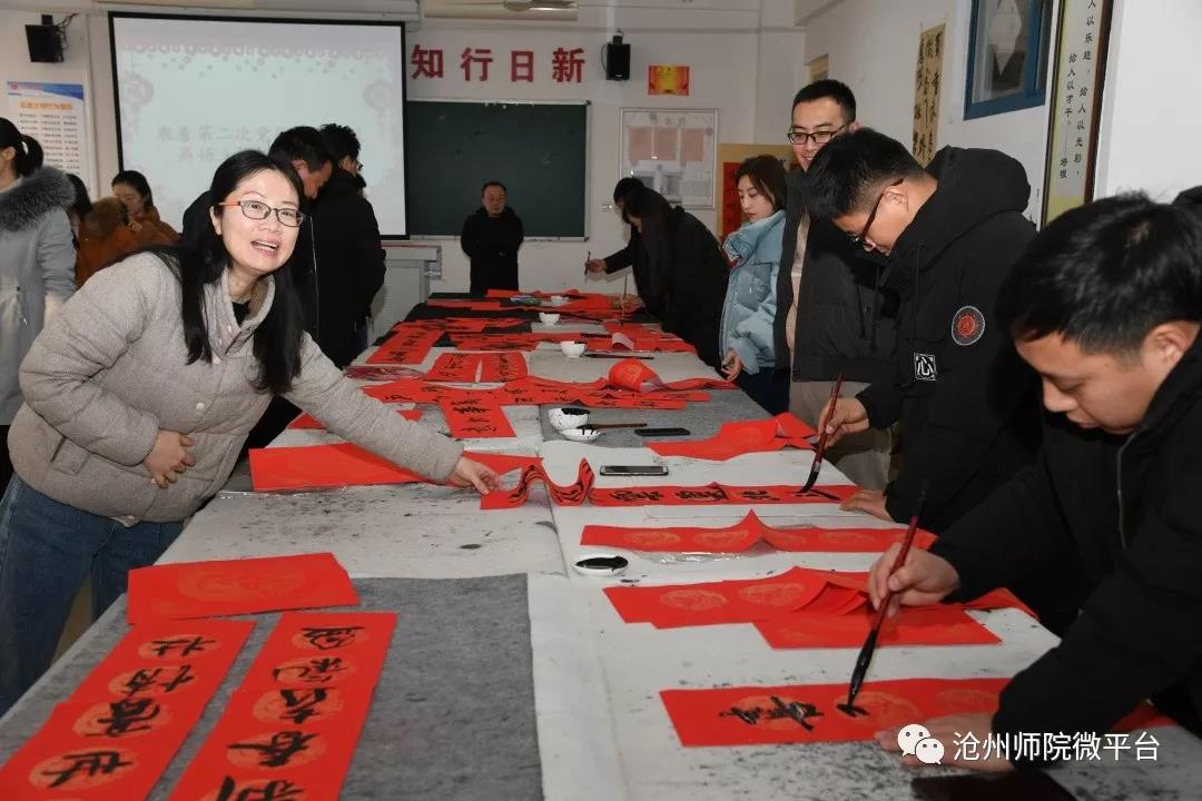 “爆竹声声辞旧岁,红梅朵朵迎新春”“一家和睦一家福, 四季平安四季春”,活动现场,文学院教师通过一幅幅春联向在场干部教师送上了节日的祝福。