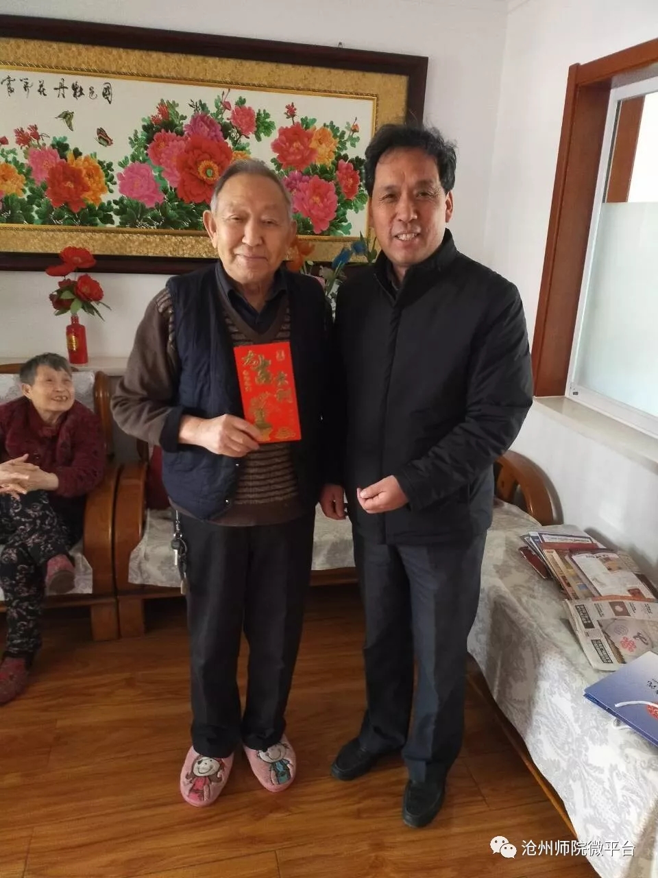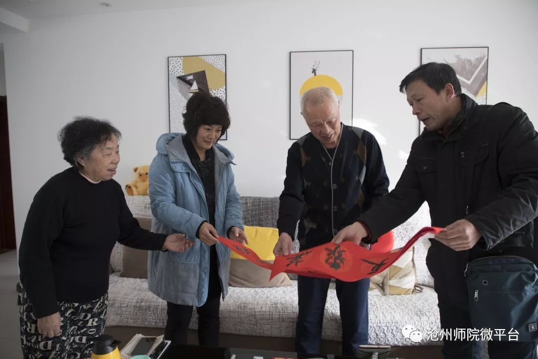 校党委班子成员王双库、姜忠明、高颖、周振平、范小振、彭学君分别到太阳集团在沧的退休老干部家中慰问,为老干部送上节日的祝福,并亲手为他们赠送了慰问金和由太阳集团书法专业学生手写的春联、福字。