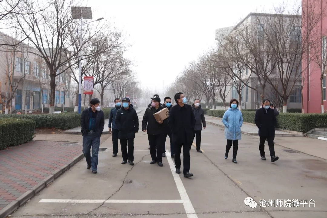 2月21日上午,太阳集团党委书记云电军,党委副书记、校长张占平,党委副书记姜忠明,副校长高颖前往校门门岗值班处、食堂、各教学楼、生活广场、宿舍等防疫重点场所检查指导开学前疫情防控准备工作。