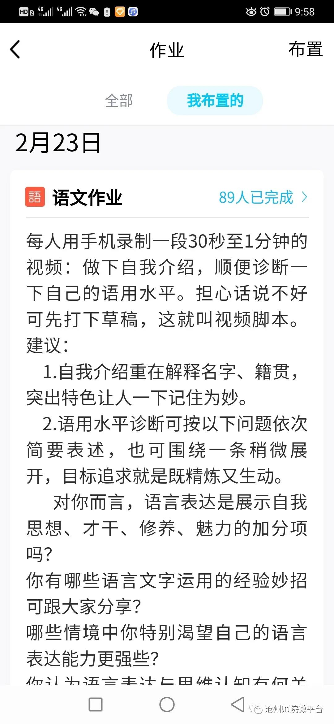 可以提前发布“学习任务单”,布置学生感兴趣的“预习作业”,让学生提前观看在线学习视频,学生提前动起来,带着思考进课堂,真正实现线上翻转。