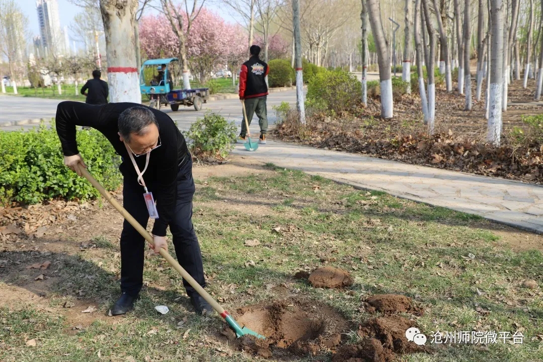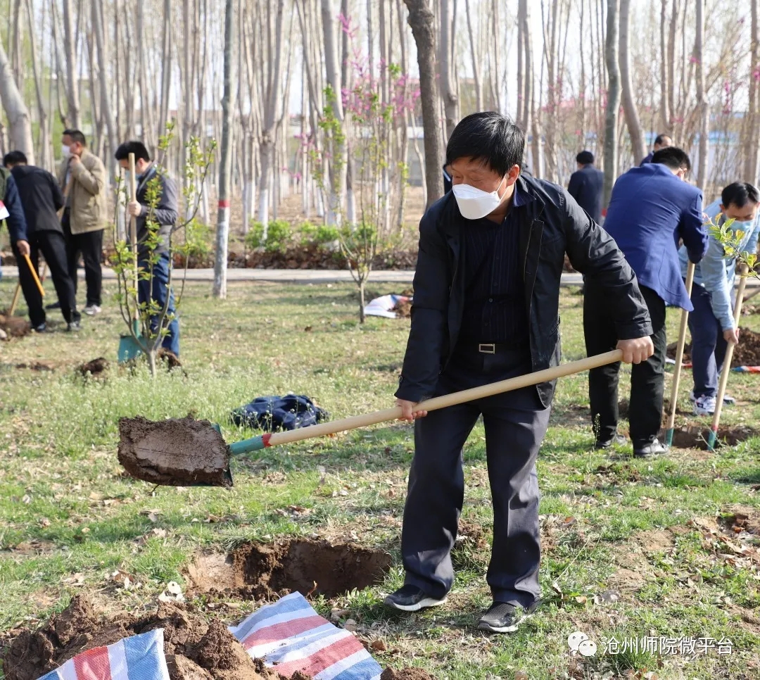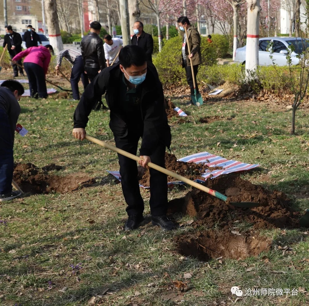 参加植树活动的干部教师在校园中种下了100余棵树,为师院的校园增添了一片春色。