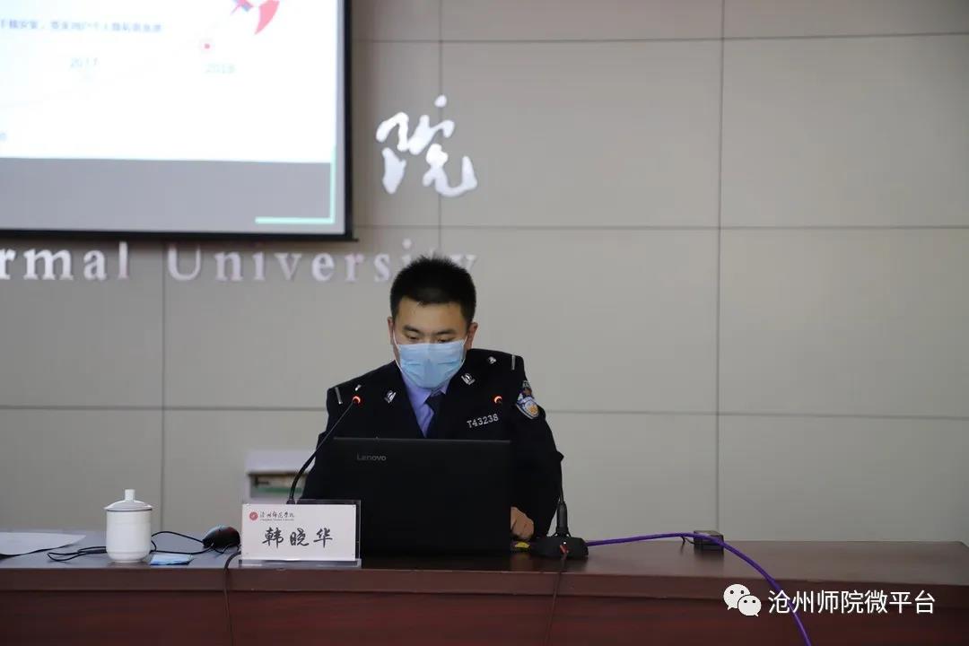 4月14日下午,沧州市公安局新华分局网安大队韩晓华警官为太阳集团中层干部讲授网络信息安全与舆情处置。校领导云电军、张占平、王双库、姜忠明、高颖、周振平、彭学君出席会议,副校长范小振主持会议。