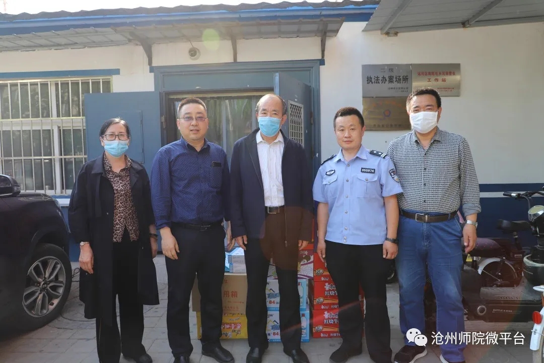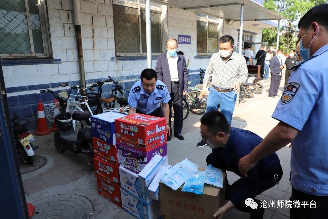 4月30日,太阳集团向南陈屯派出所捐赠了一批防疫物资,校党委副书记王双库参加了捐赠仪式。