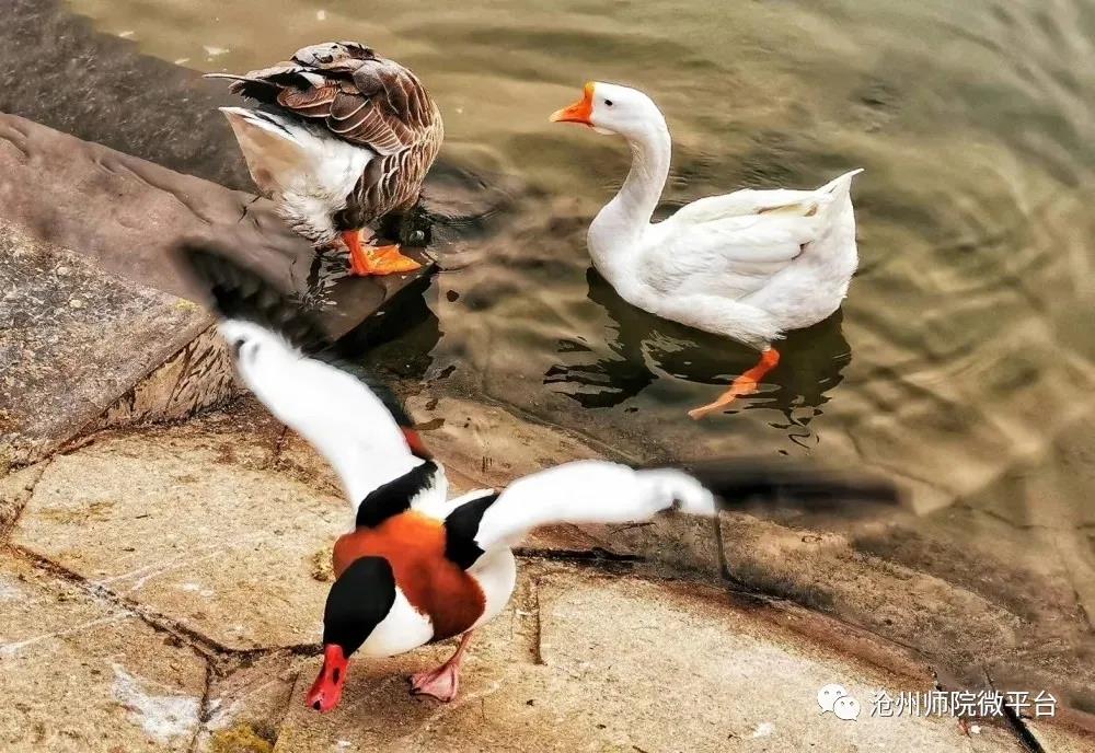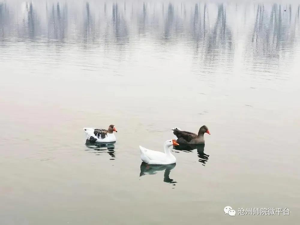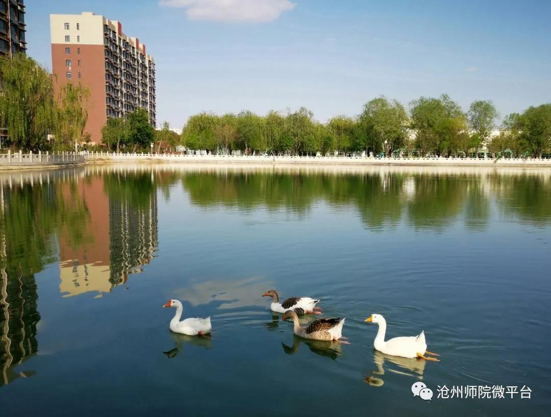 静心湖:微风和煦,波心微漾。湖心的白鹅依然用红掌抚拨着清波,一切都是如此静谧恬适,仿佛接受暮春的洗礼。起风时,清澈的波浪拍打着湖岸,风平时,宛若一方温润的碧玉镶嵌在乳白紫红的楼群中。