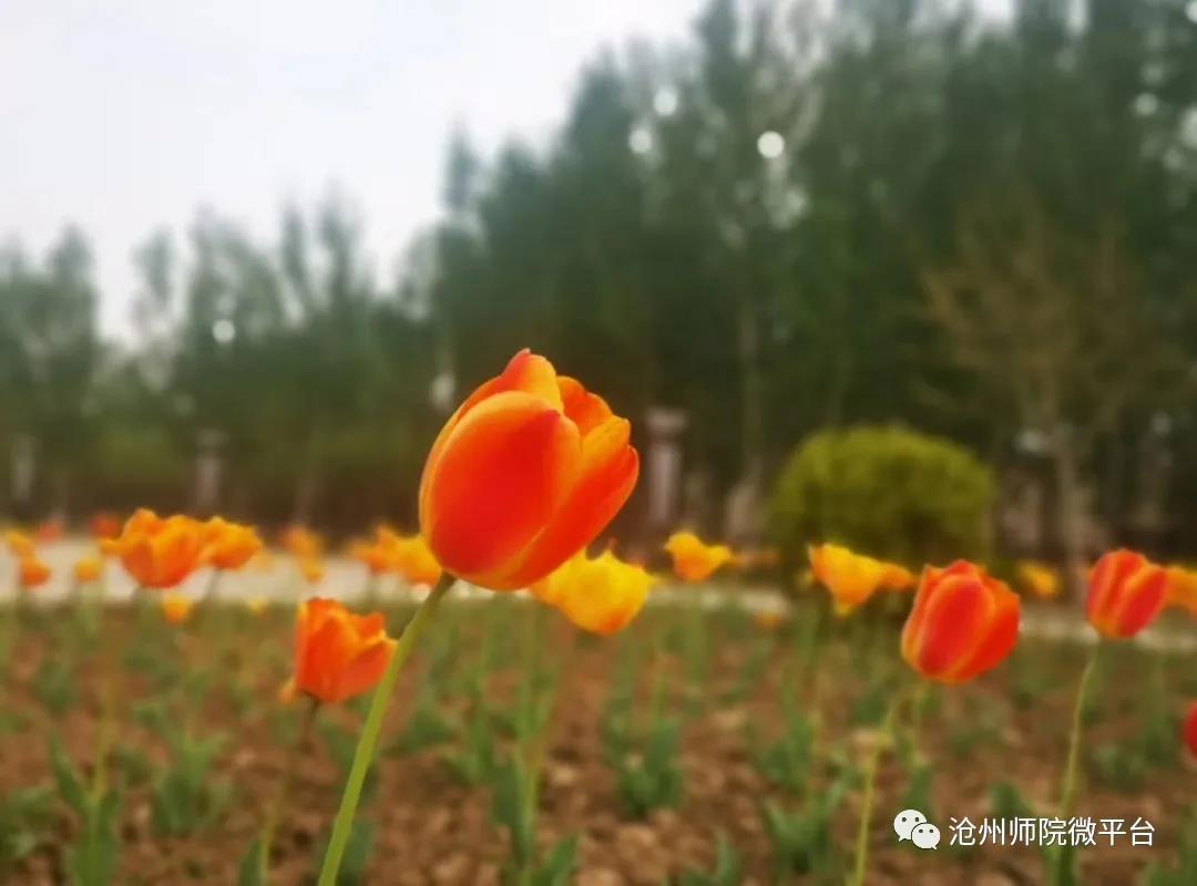 图书馆广场:新栽的郁金香,在微风中轻轻摇曳,新装的景观灯,在夜幕里熠熠生辉。无论白昼与夜晚,风吹过图书馆前的广场,依旧温暖,这里的一切,似乎都在等着你们平安归来。
