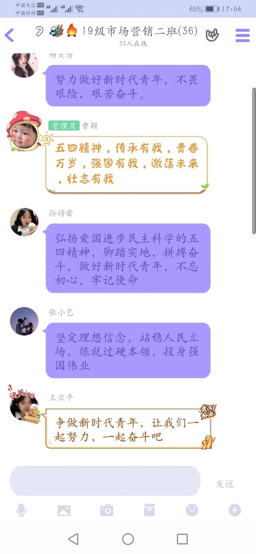团课上同学们积极与主持人连麦,踊跃发言,针对寄语表达了对国家和社会的责任意识。大家纷纷表示一定牢记嘱托,不断为中国梦而努力奋斗,让时代看到广大青年的新面貌。用奋斗诠释青年模样,用青春书写壮丽新篇章。