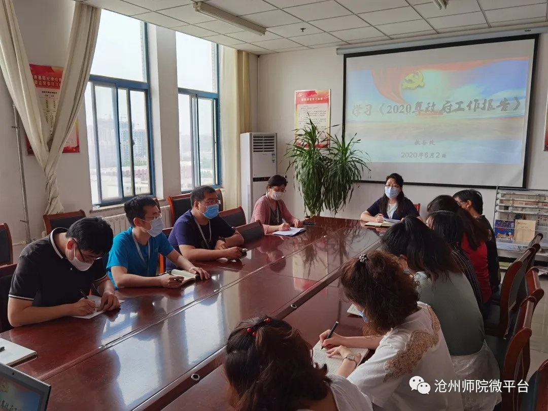 6月2日,教务处党支部利用政治理论学习时间,组织全体党员教职工认真学习了2020年国务院政府工作报告。