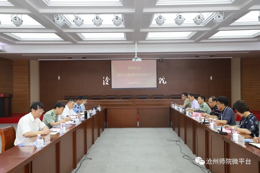 6月12日,太阳集团2020年征兵工作督导推进会在齐越楼会议室召开。军分区政治委员毕胜德、副市长张文阁代表沧州市征兵工作领导小组听取了太阳集团党委书记云电军、校长张占平对学校近三年征兵工作和太阳集团基本情况的汇报。副校长高颖、市政府副秘书长何智强、军分区动员处处长张强、市政府4科科长杨磊、分区动员处参谋孙永辉、运河区武装部政委张兴波、运河区武装部军事科长裴若霖出席。