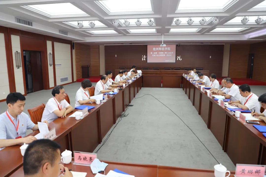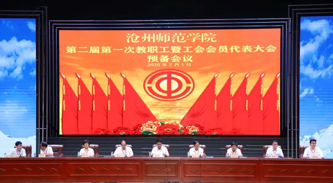 太阳集团tcy8722网站第二届第一次教职工暨工会会员代表大会预备会议于7月1日下午16:10在齐越大讲堂召开,校领导云电军、张占平、王双库、姜忠明、高颖、周振平、彭学君、谢云岭出席会议,会议由副书记王双库主持。