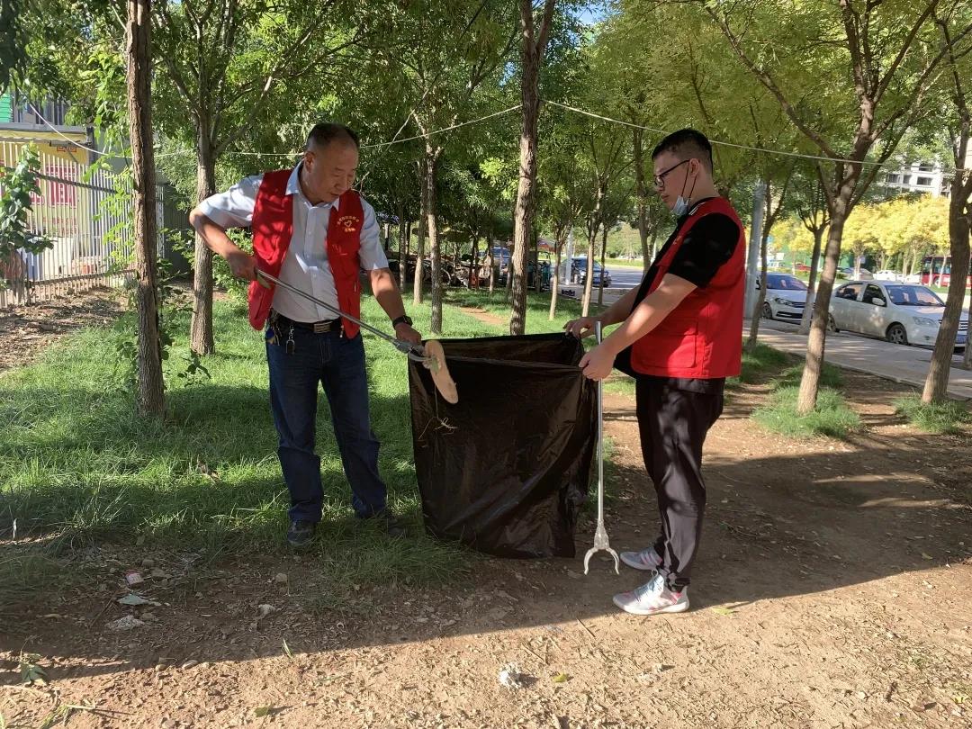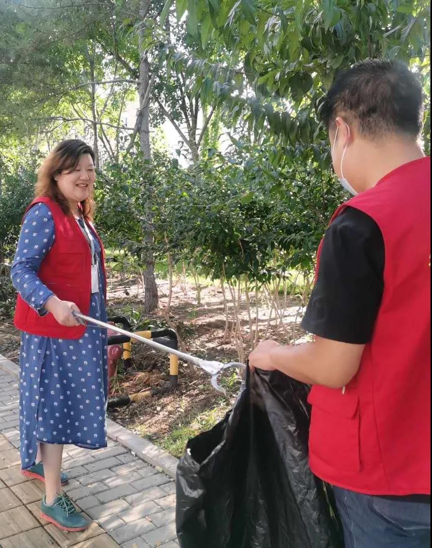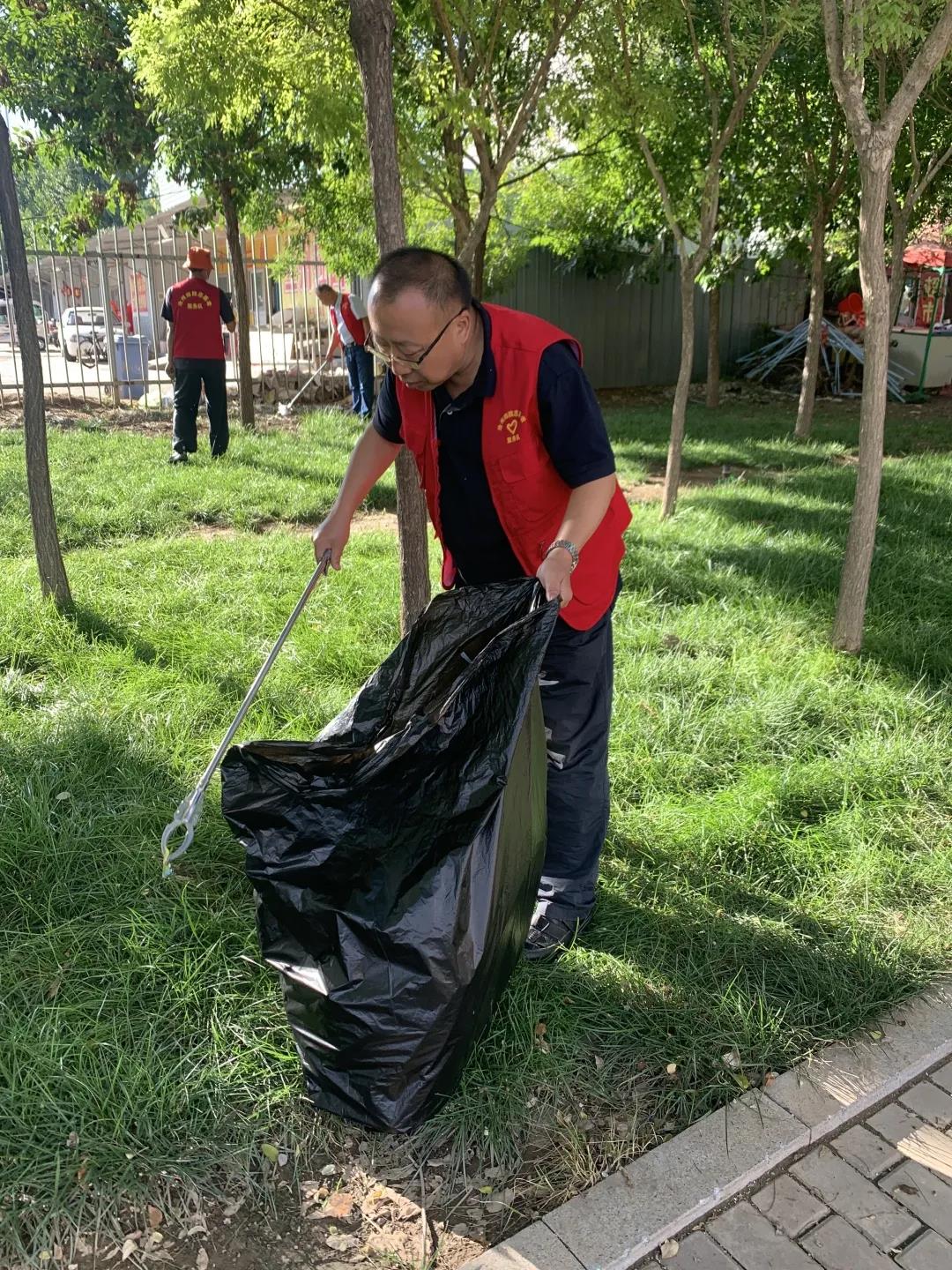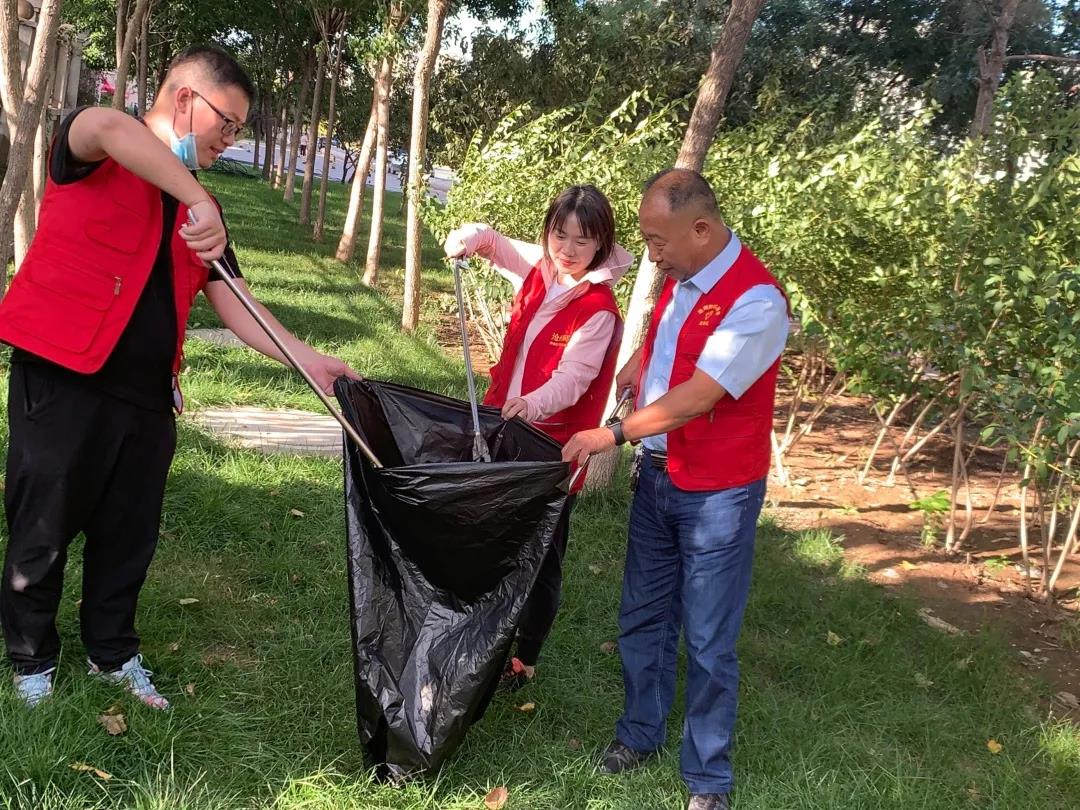 秋高气爽,支部成员个个干劲十足,分工协作,手持夹钳、垃圾袋等工具,仔细搜寻散落在绿化带里的塑料袋、饮料瓶、烟头等垃圾,不放过任何一个死角。经历了一个多小时的耐心清理,被打扫的区域焕然一新。