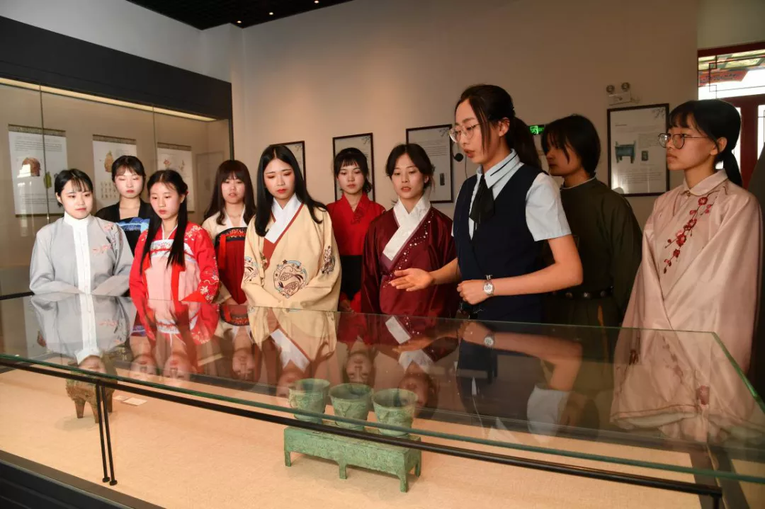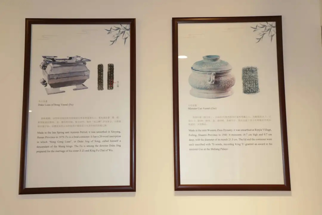 馆内青铜器器型多样,浑厚凝重,铭文加长,花纹富丽,虽有泥尘掩盖,却挡不住它所意蕴中富丽堂皇、安和太平的古朝盛世。