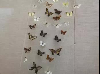 标本馆为参观人员专门设置了休息室,在观看完毕可供片刻小憩,桌子上用画框展示着有着生科特色的蝴蝶标本。