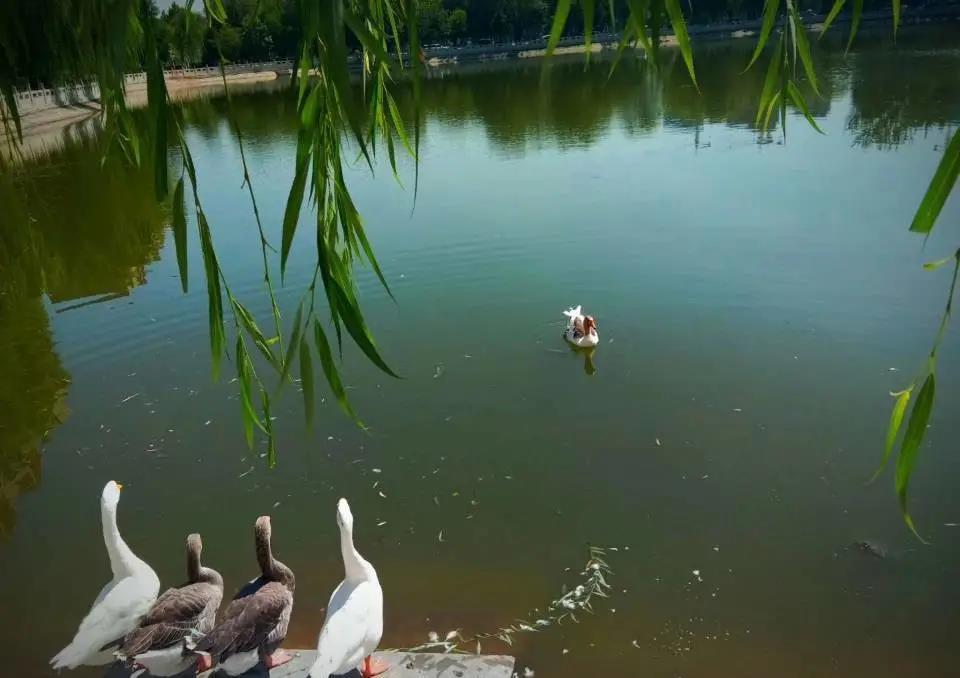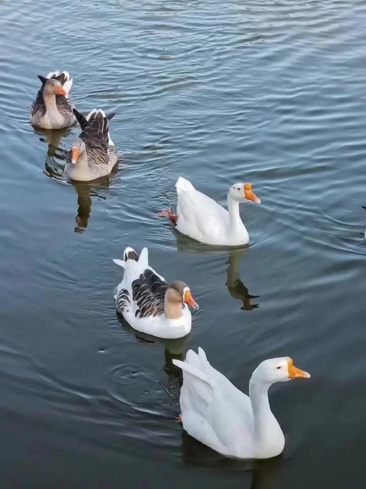 游弋在静心湖的天鹅,它们享受着动保中心志愿者的投喂也感受着天光一色的美好惬意。