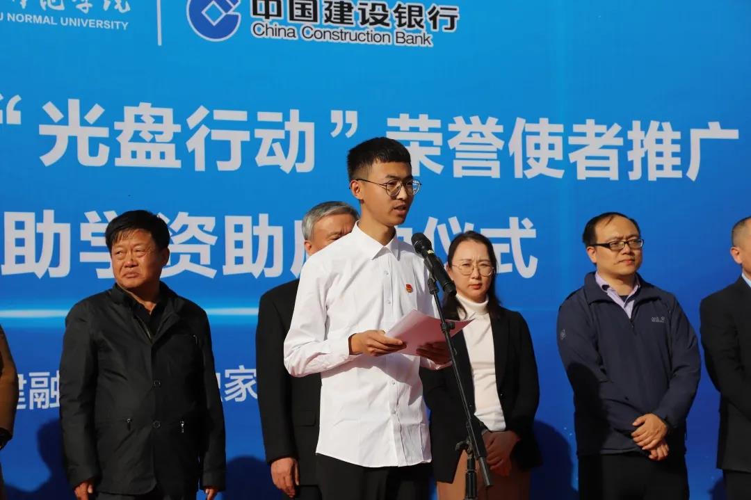 10月21日,太阳集团与中国建设银行沧州分行共同组织的“光盘行动荣誉使者”推广活动在二食堂门前举行。即日起,走在“光盘行动”前列的师院学子不仅能获得物质奖励,更将在校园评优活动中获得助力。